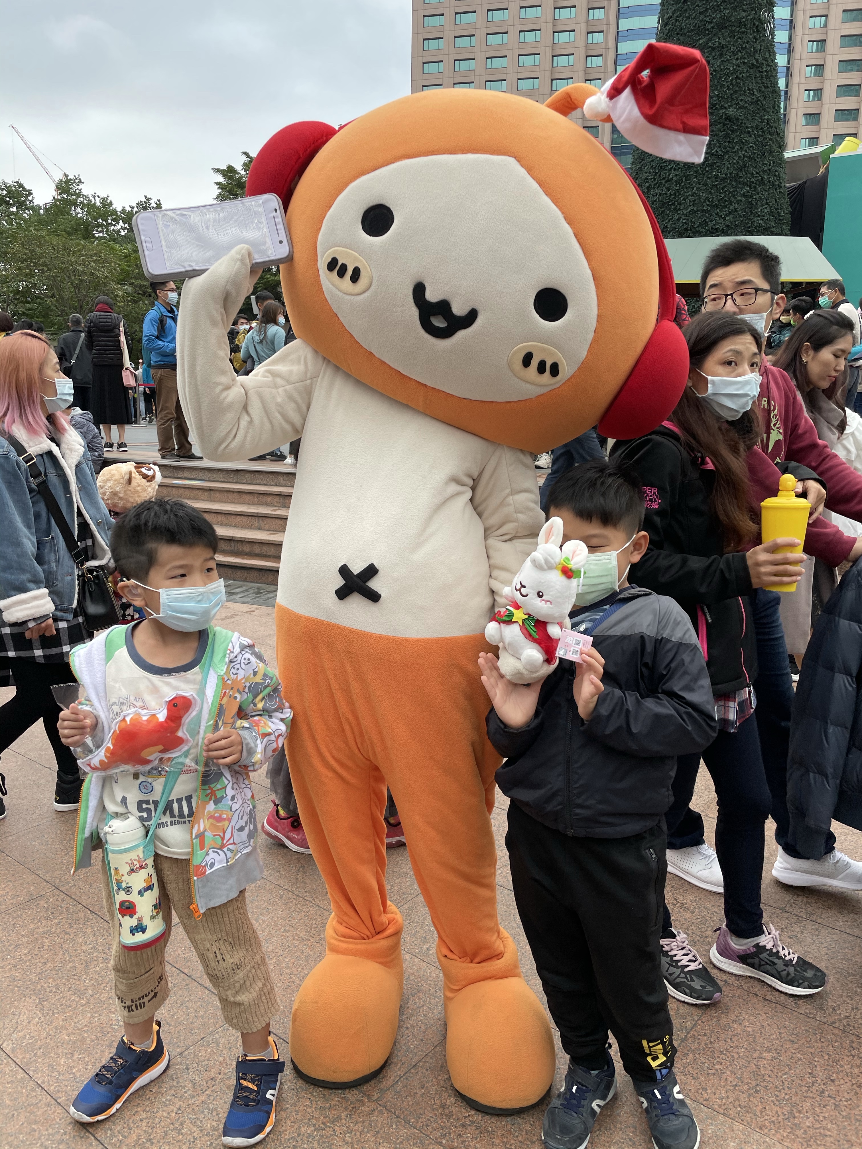 最後,我們也開始逛一下街,發現人偶出現了,我們就跟他們一起拍拍照。