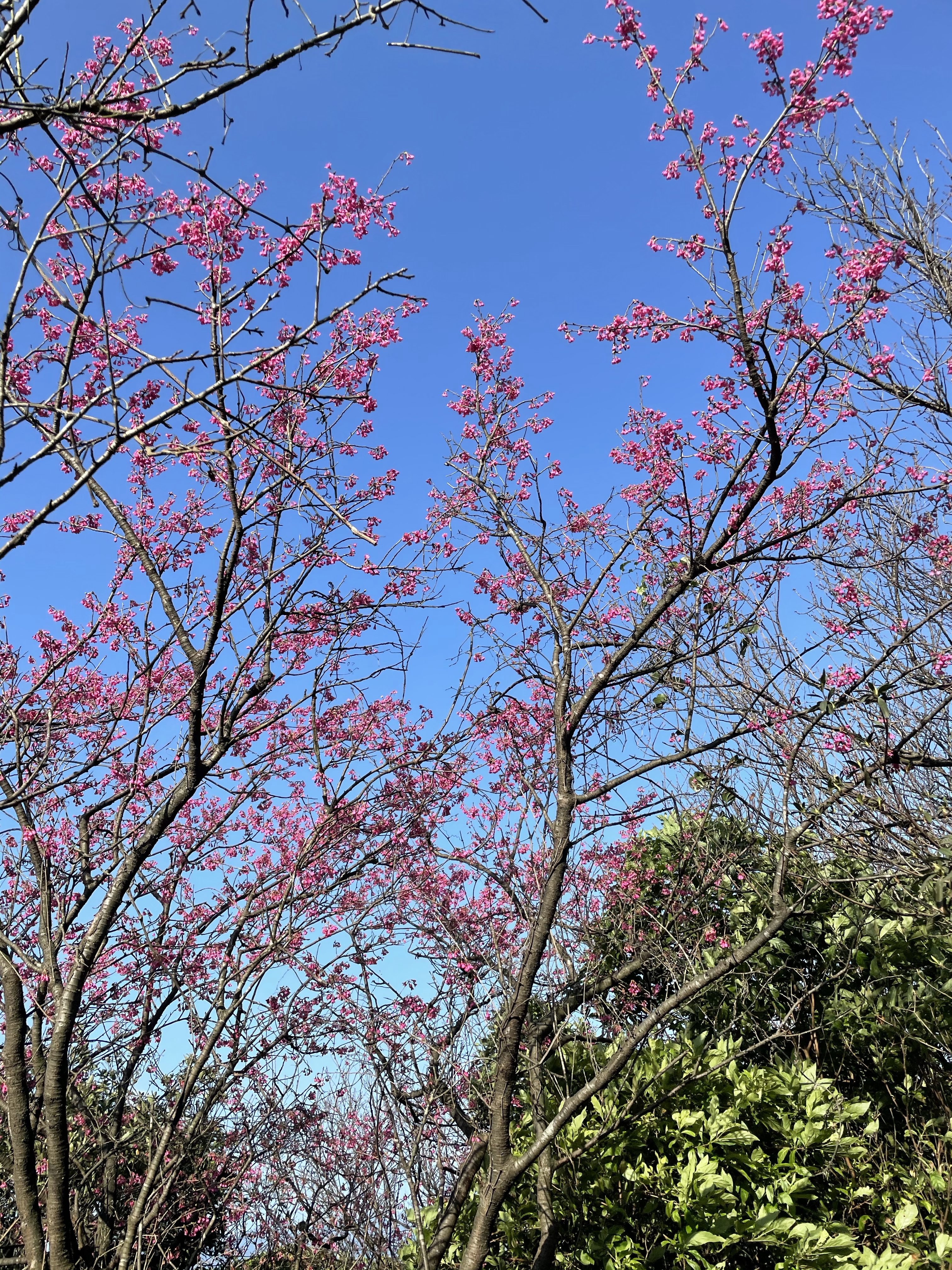 就在九份老街附近,就有一個登山的路口,整個路程會先經過一個平台,然後三個涼亭,最後一個就登頂了。入口之後,就可以看到美麗的花,之後就開始慢慢上攻了。