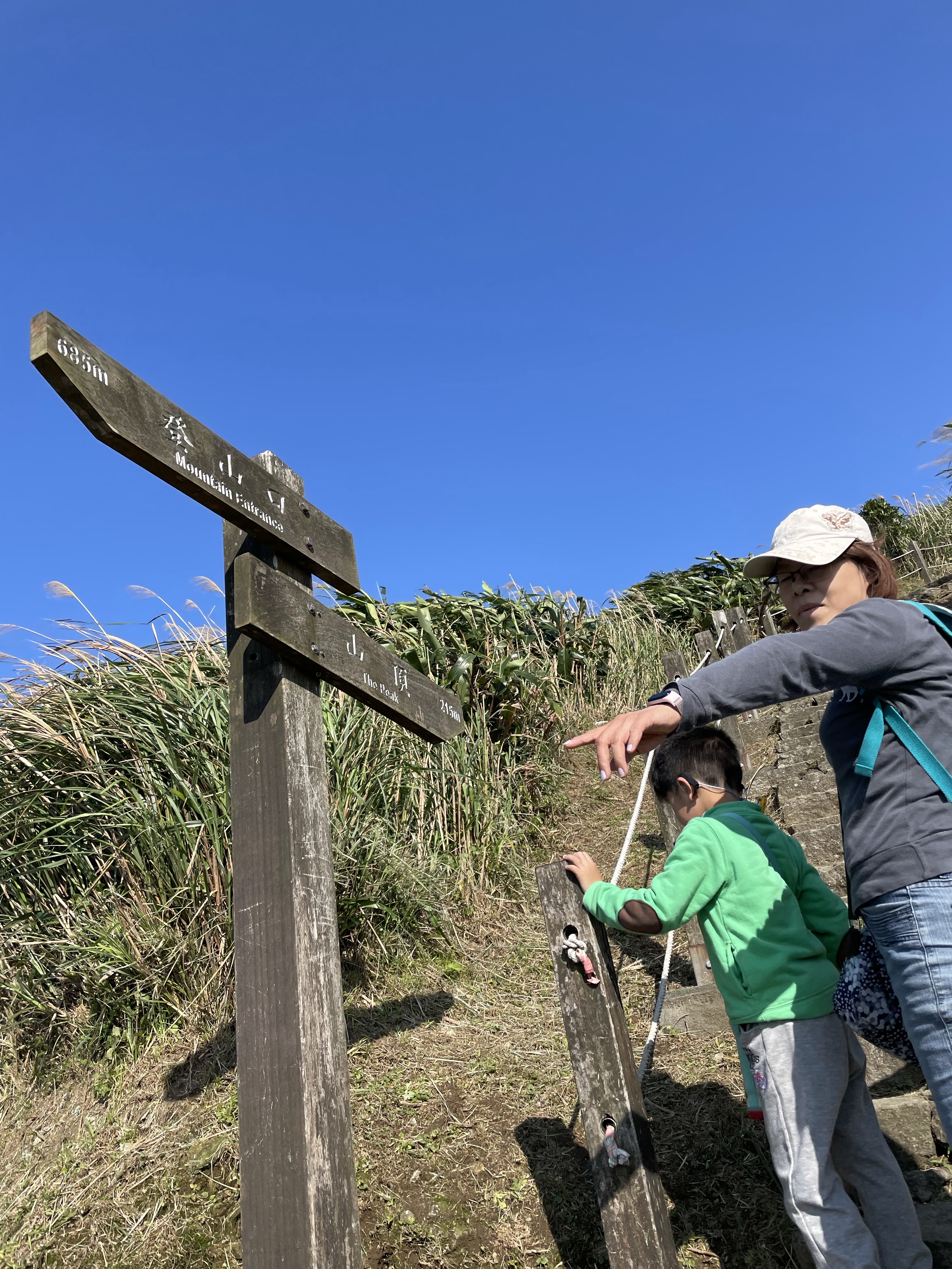 沐沐一家,最後拍上這邊放好的地標照,證明我們有來過,今年第一座小百岳。