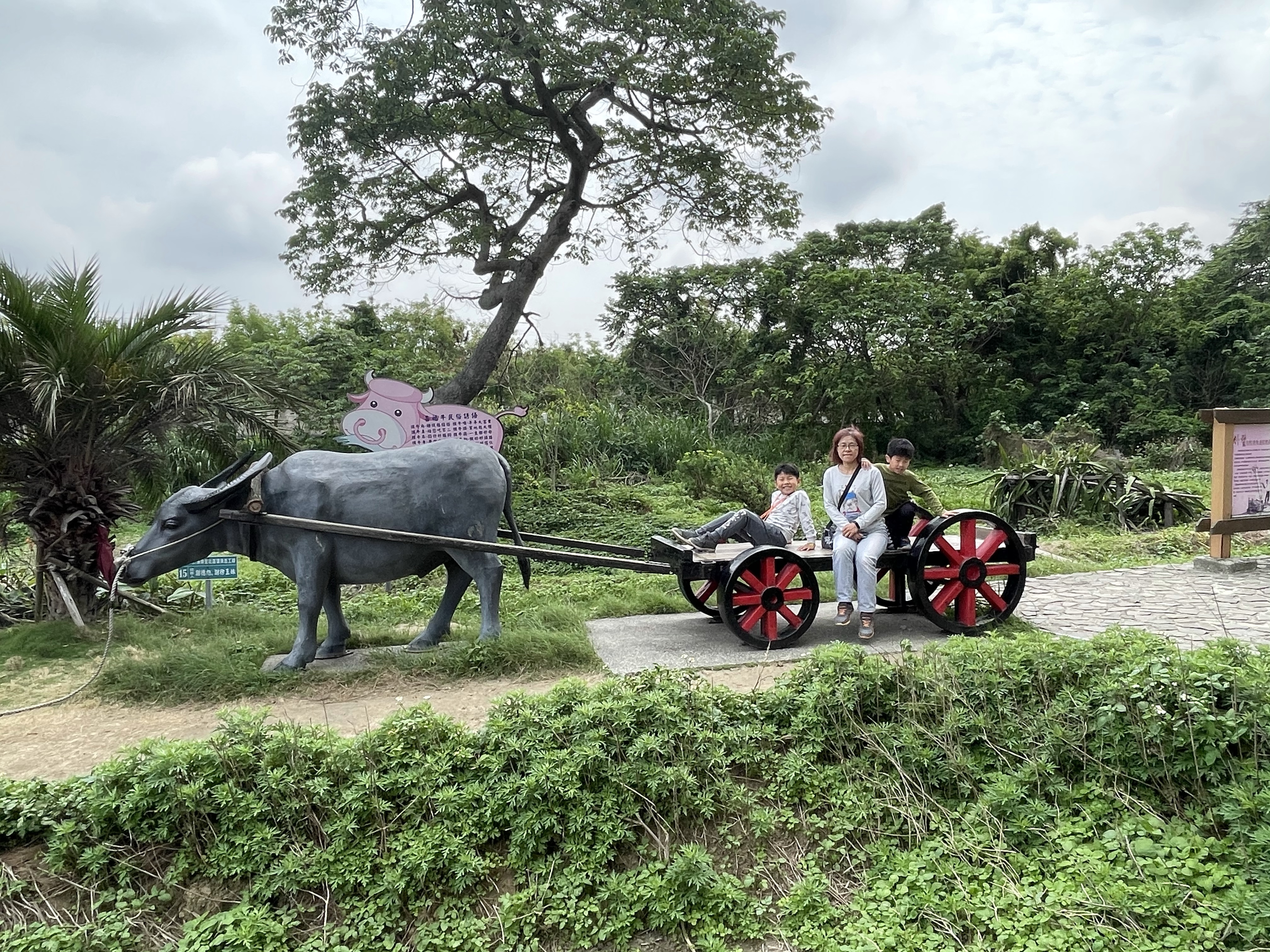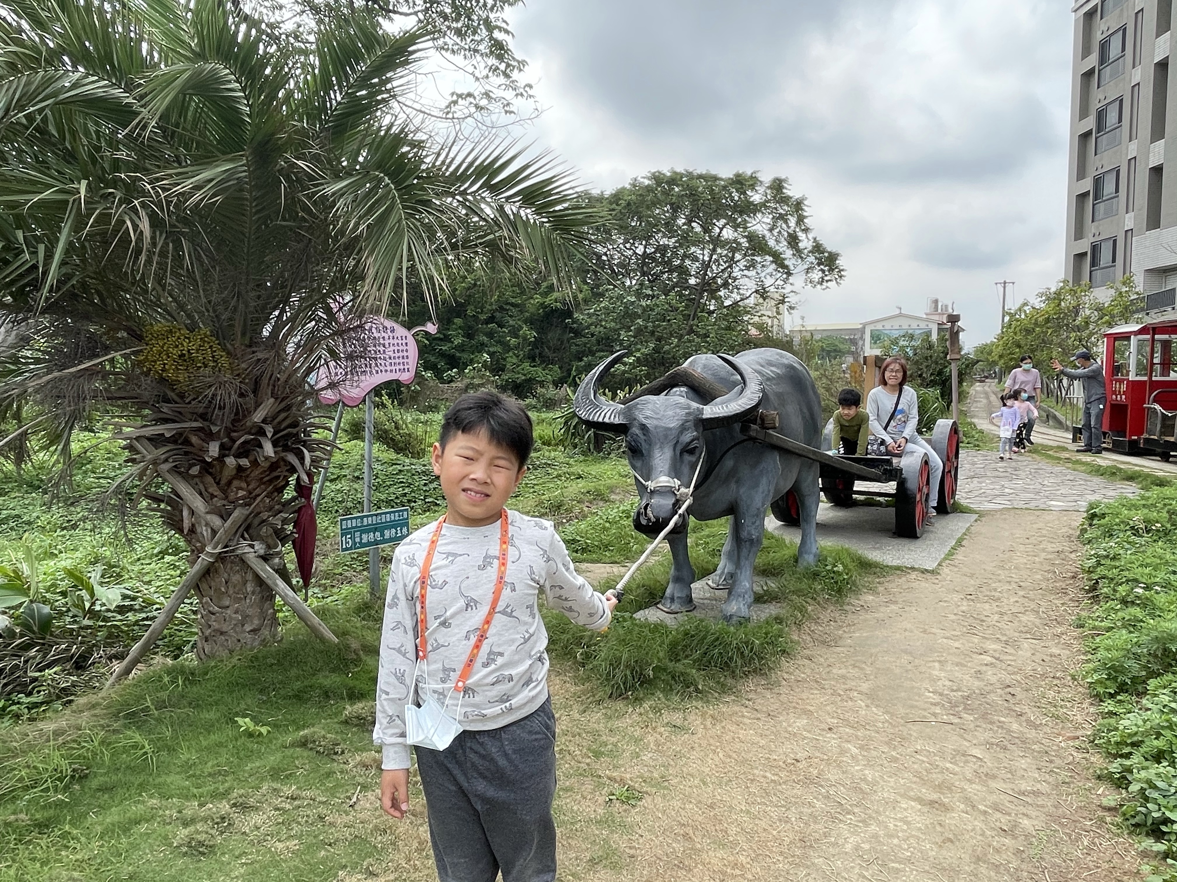 司機會進行導覽及協助拍照,一開始大多進行相關植物的導覽,然後抵達一個造景的景點,有牛車、12生肖,還有幾個昆蟲的成長變化,如蝴蝶、青蛙等,大家都在這邊拍美美的照片。