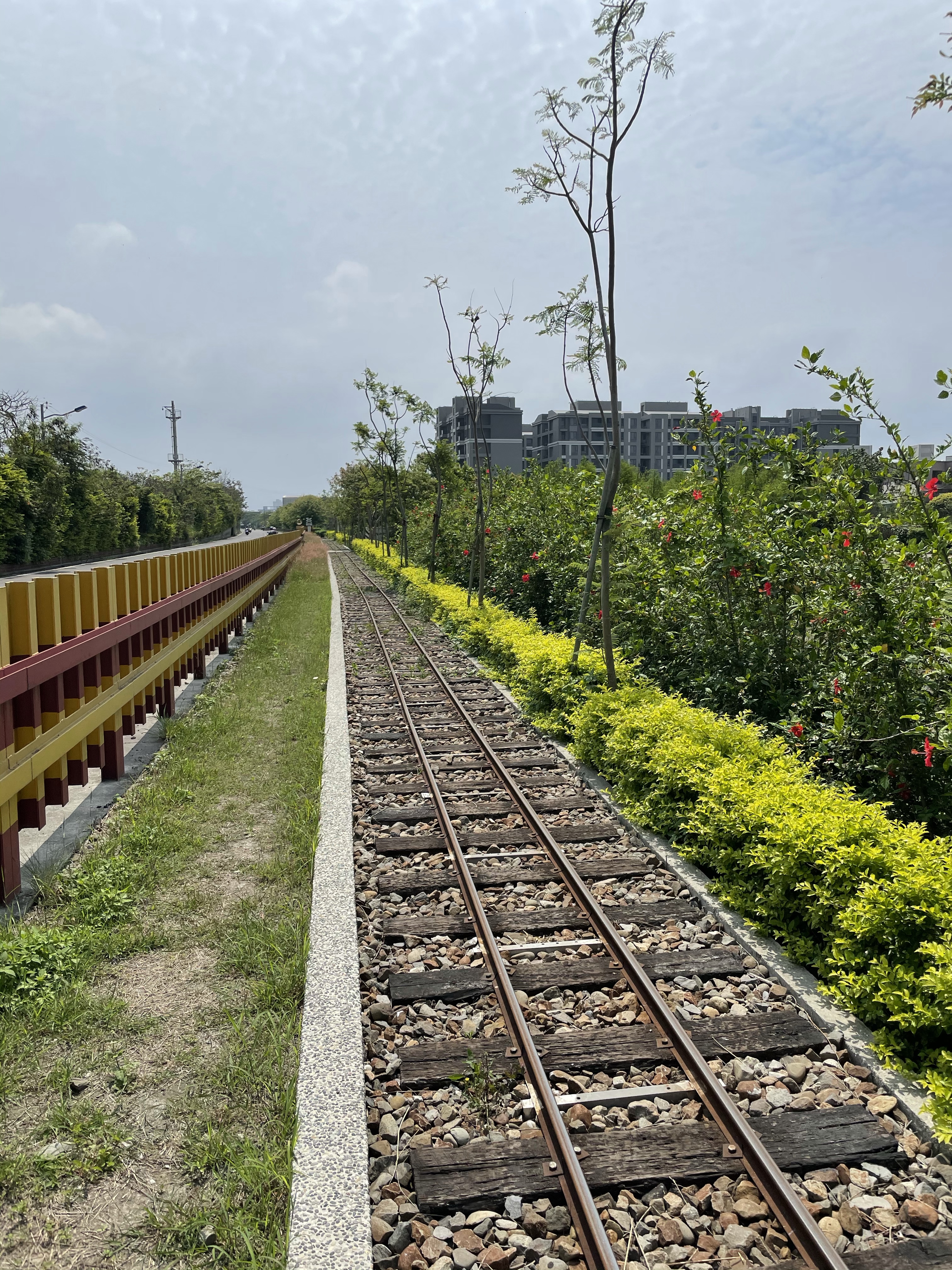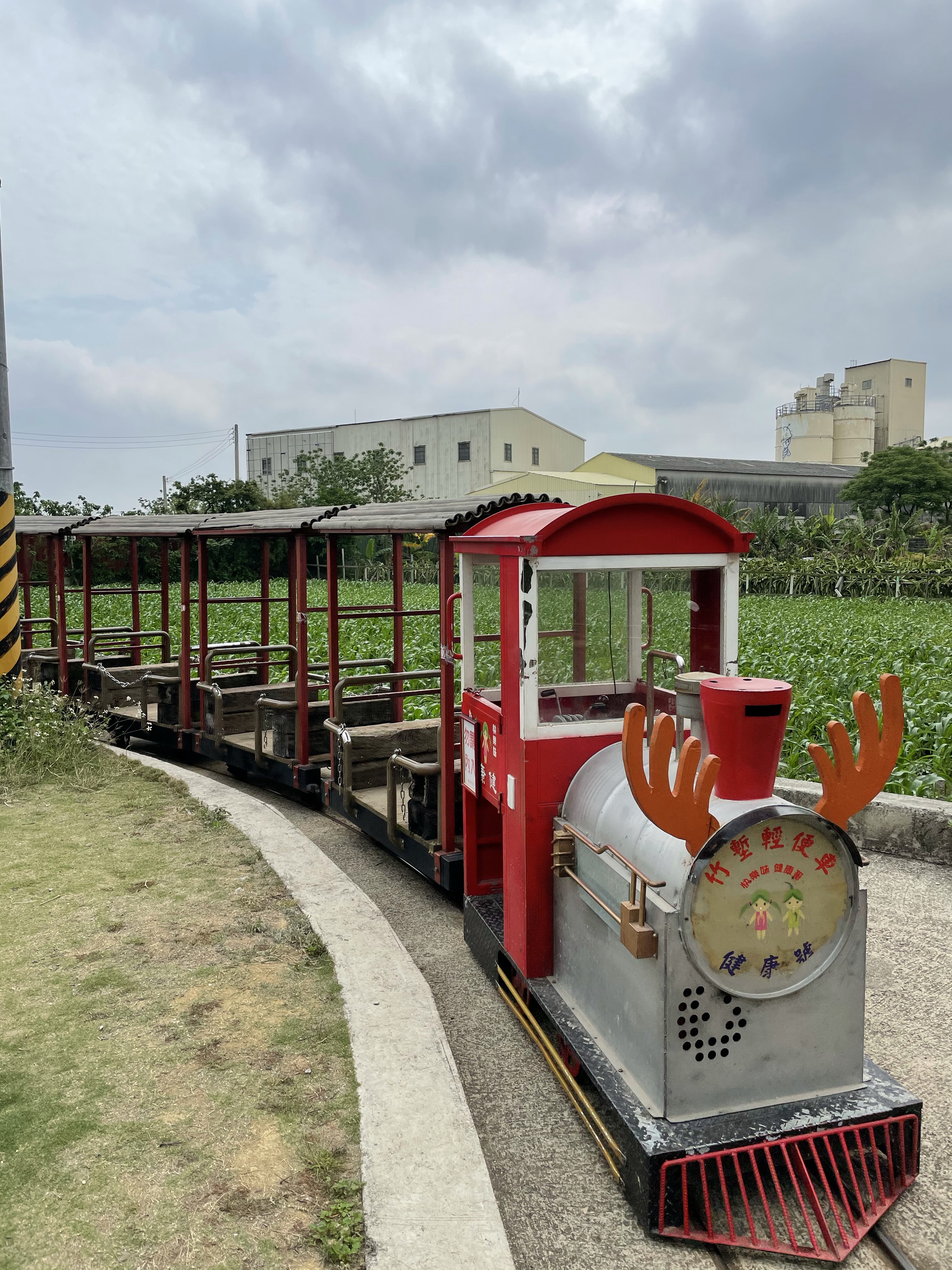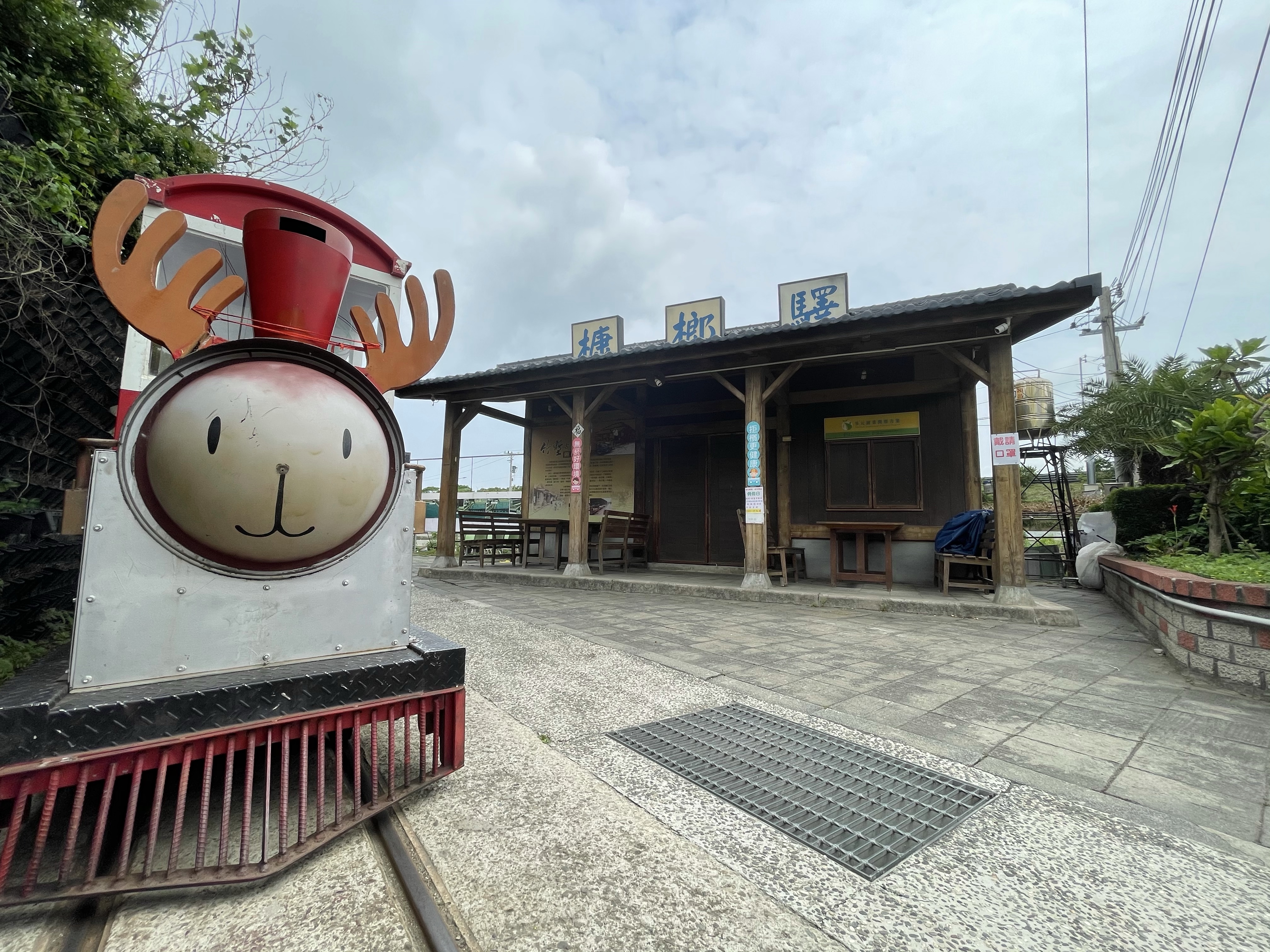 下一站就到槺榔驛,途中會經過一個類似山洞的植物造景,真的像山洞一樣,然後就看到小火車在民房旁邊行駛,抵達槺榔驛,這邊有人工的湖,然後有以前的車站,在這邊走走看看相當開心。