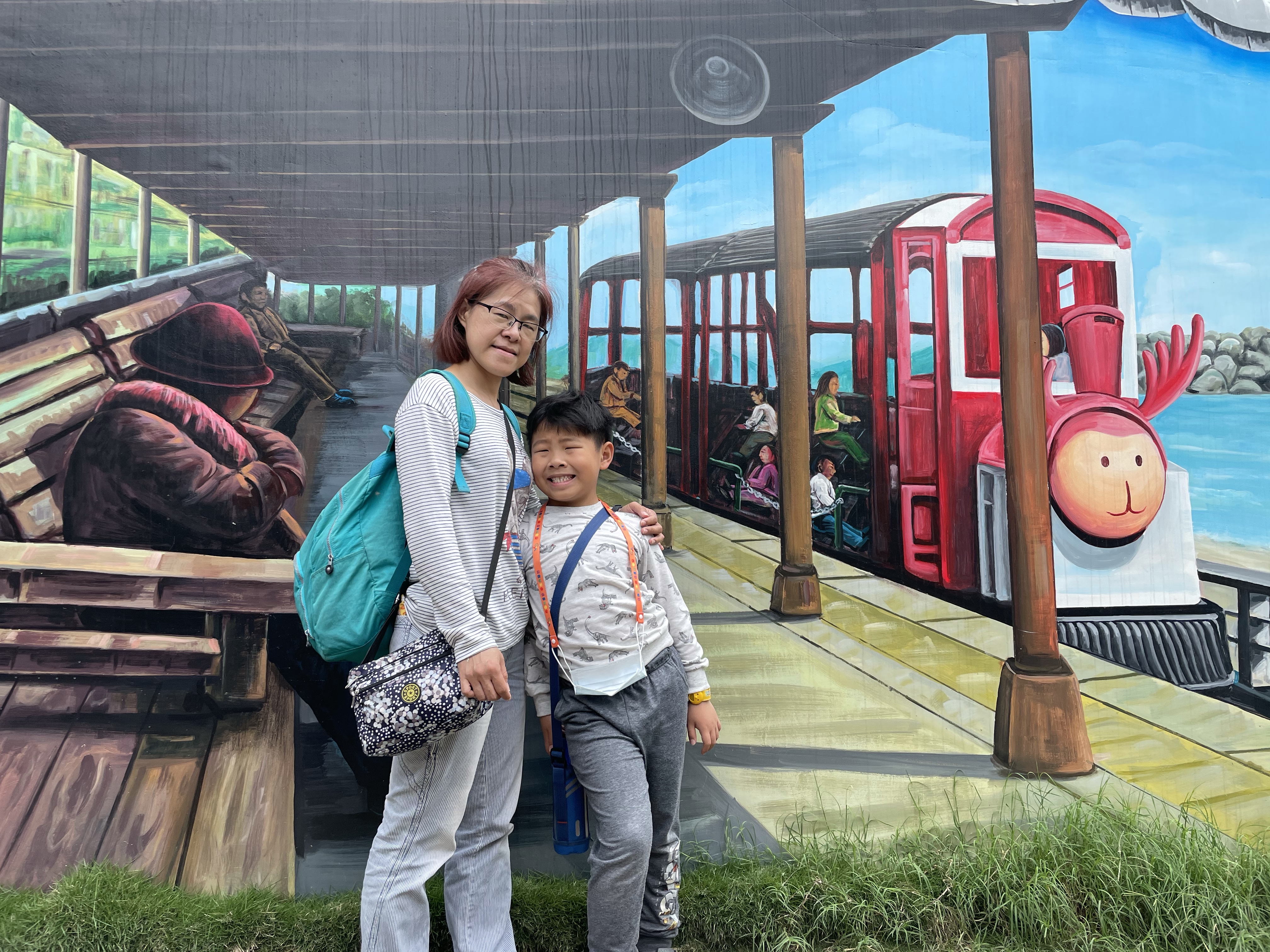然後就開始往回程走,會在彩繪牆下車,其實也就是佑聖宮後面的廁所建築物,重要是避免與下一批次的人混雜,較難分辨。回程時也介紹防空洞,但是沐沐一家因為感覺要進入他人住宅,所以就作罷。今天上午是一個快樂的行程。