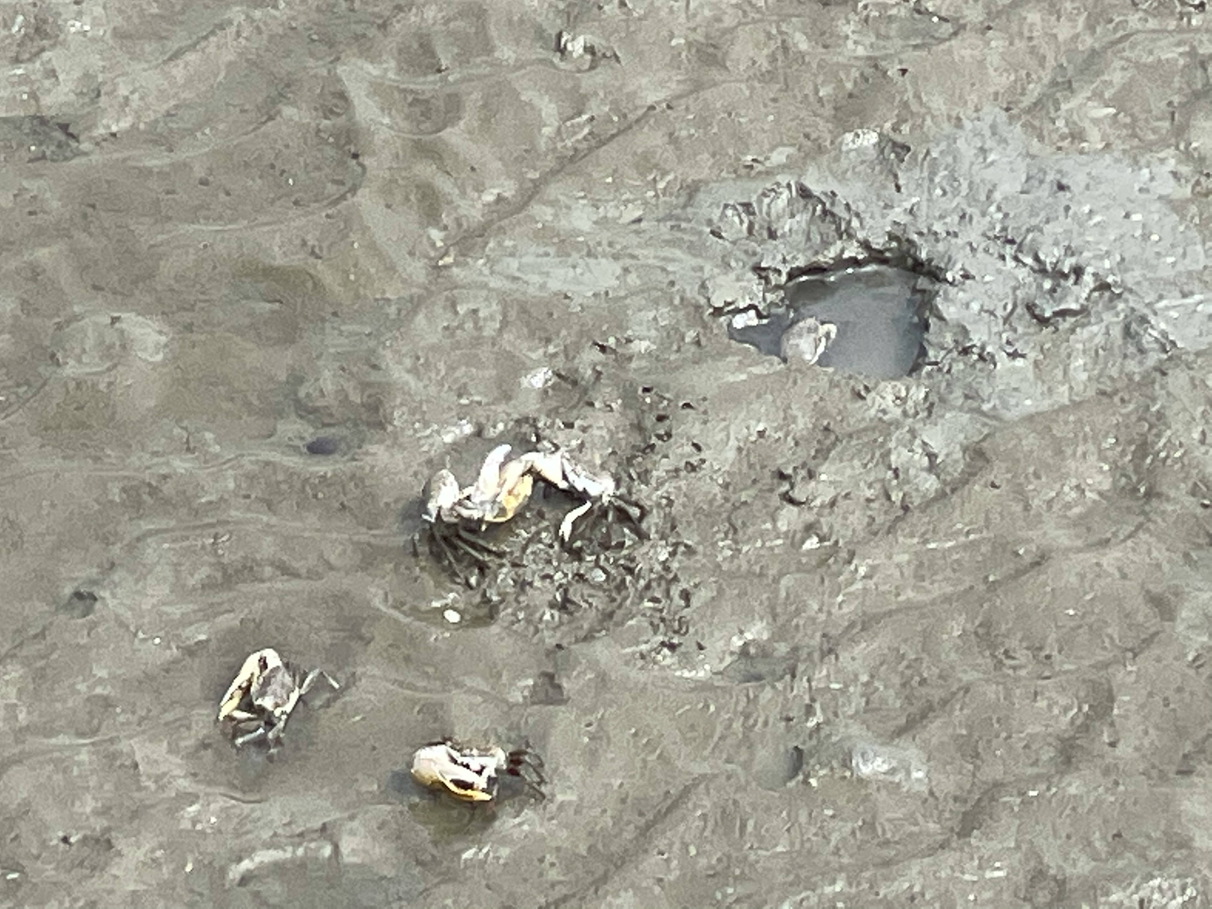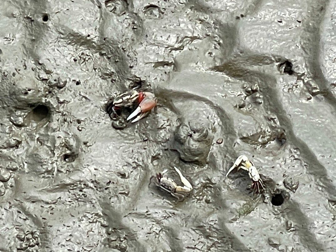 在香山溼地待比較久,主要適逢退潮,可以看到螃蟹、彈塗魚等,並且看到螃蟹在打架,很有意思。