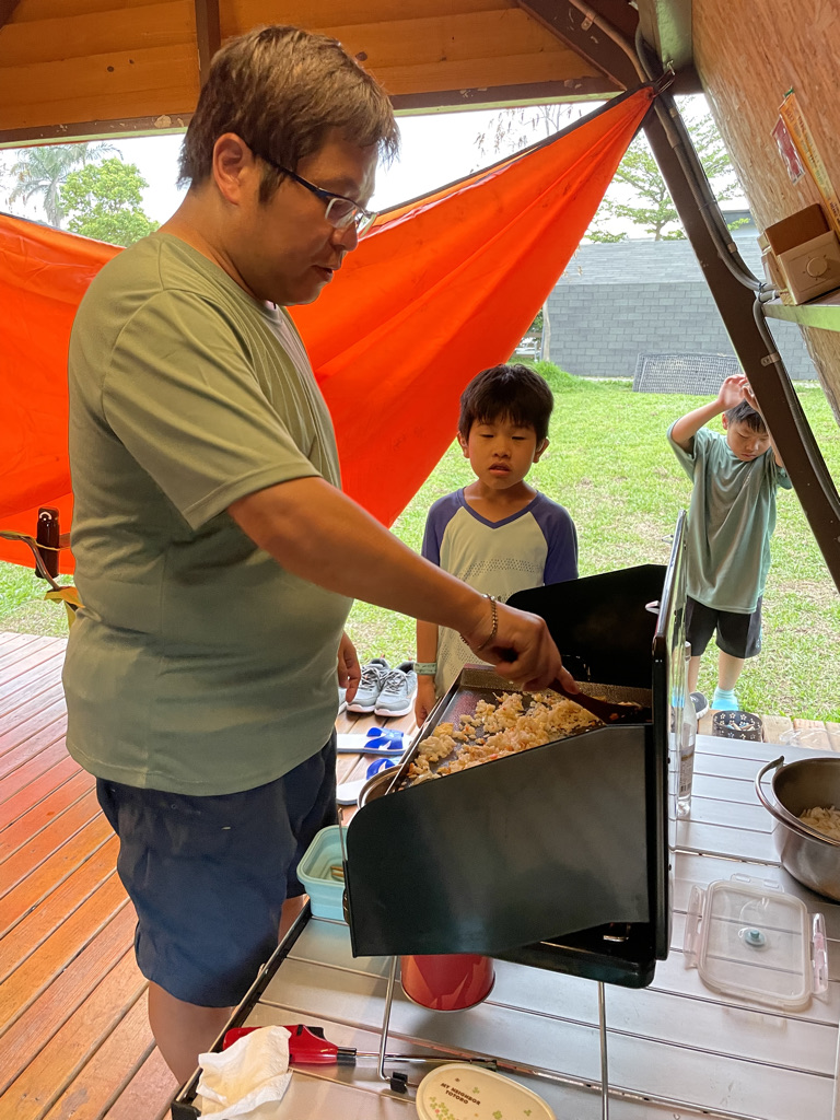 晚餐就弄一些簡單的菜色,這樣就完成今天的晚餐,大小沐沐都有幫忙整理,看這晚上風景,感受幾乎沒有人的露營環境,另外在用投影機看一下影片,真是開心。