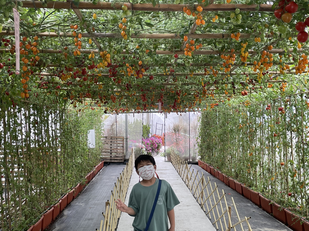 在去露營之前,沐沐一家去金勇DIY休閒農場去看看很多番茄,大沐沐看得很開心,小沐沐因為不喜歡吃水果蔬菜,所以他看一陣子,就覺得很無聊。這邊真的有很多番茄,可以自行採取購買,真的是看得眼花撩亂,有大有小、有紅有紅、有圓有扁,真的很有意思,沐沐一家摘了一些,每個吃起來都不同。有一區是禁止摘取,主要是給網紅拍美美的照片。