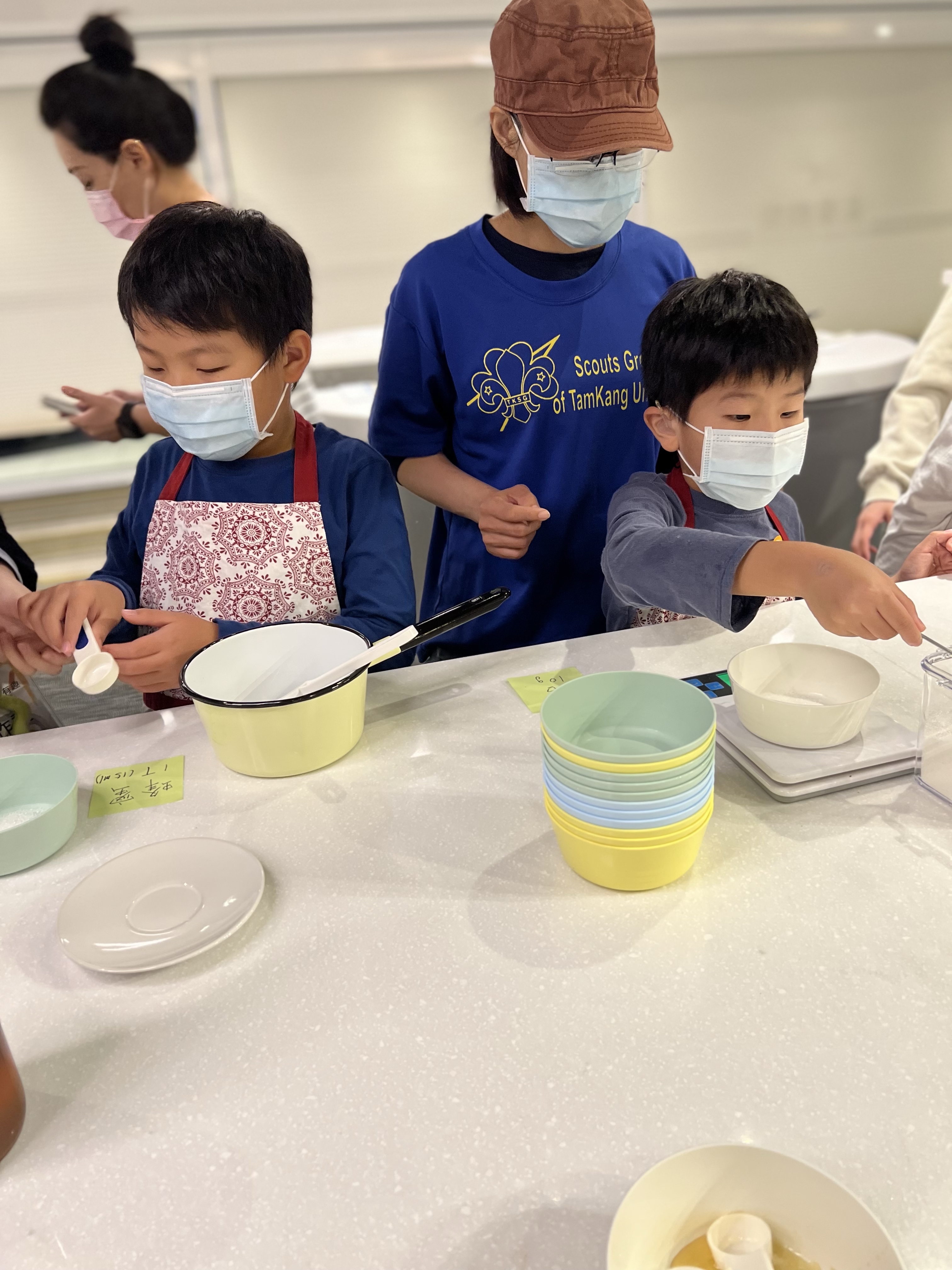 一開始先說明今天的流程,今天是先做堅果塔,然後是實驗觀察,在煮的過程是老師先示範一次,然後大家在開始拿材料開始製作。