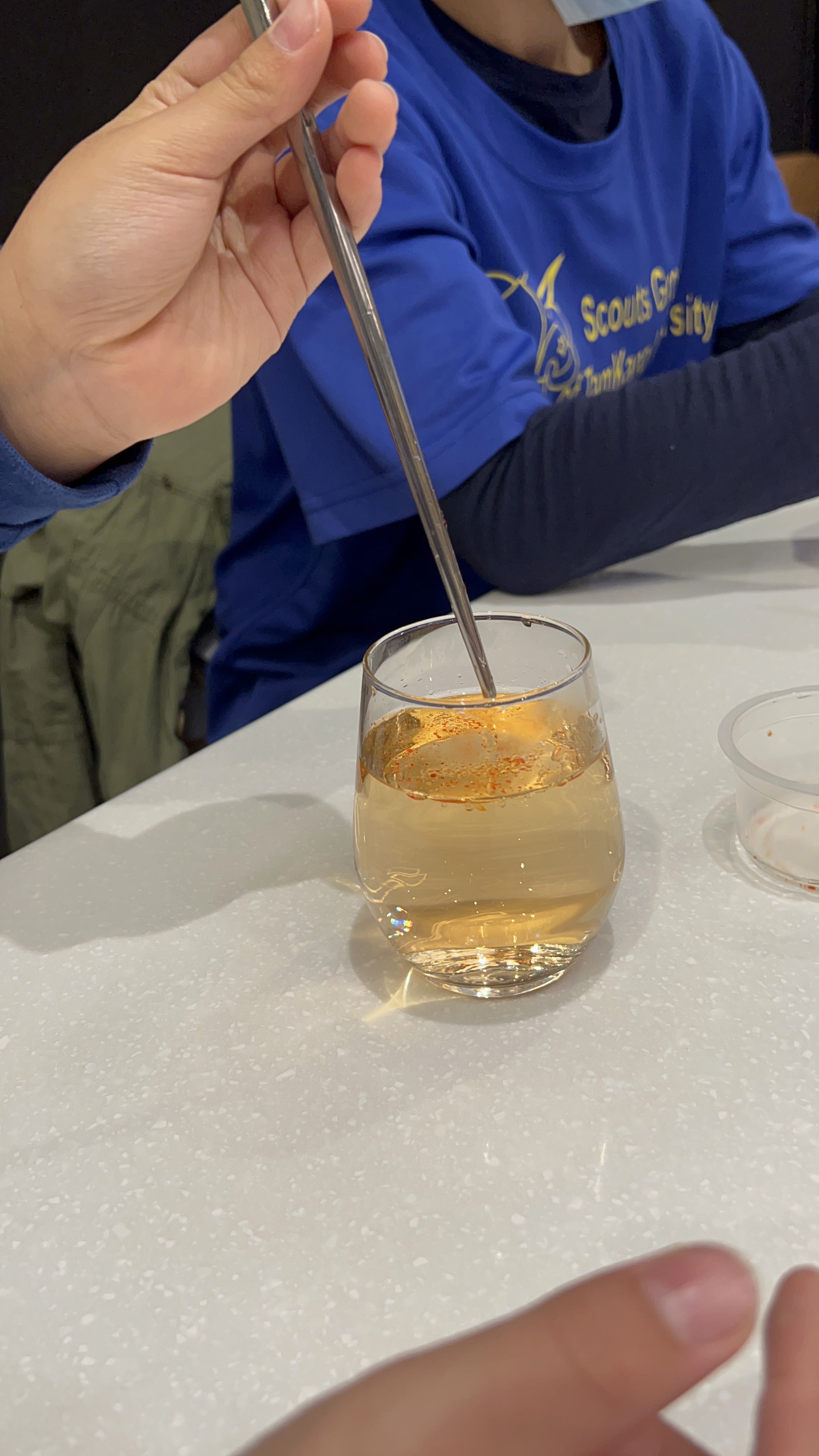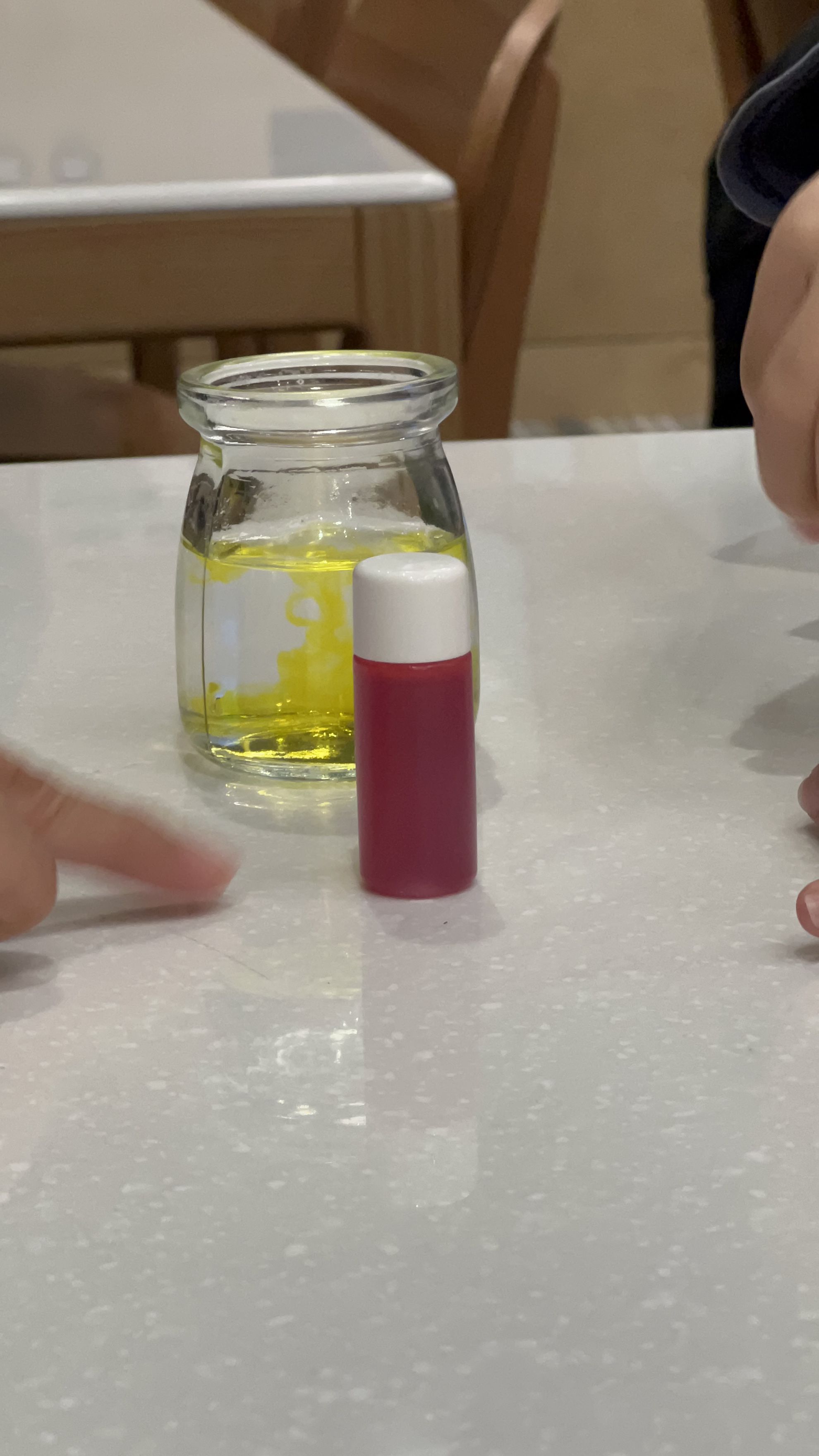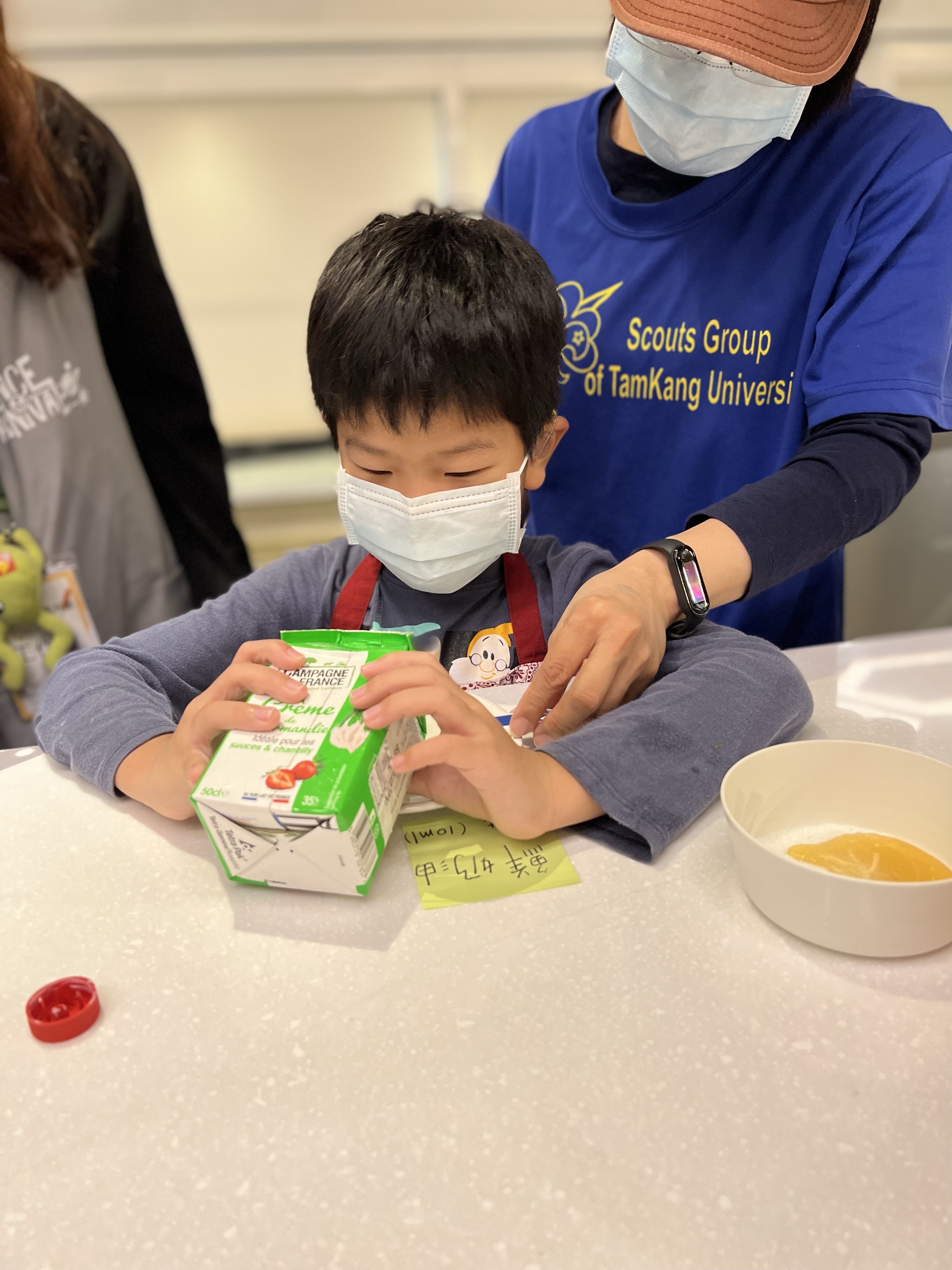 在等待堅果塔烘培的時候,來進行實驗觀察,來看一些日常生活的油水現象,還蠻有意思的活動,增長一些知識。