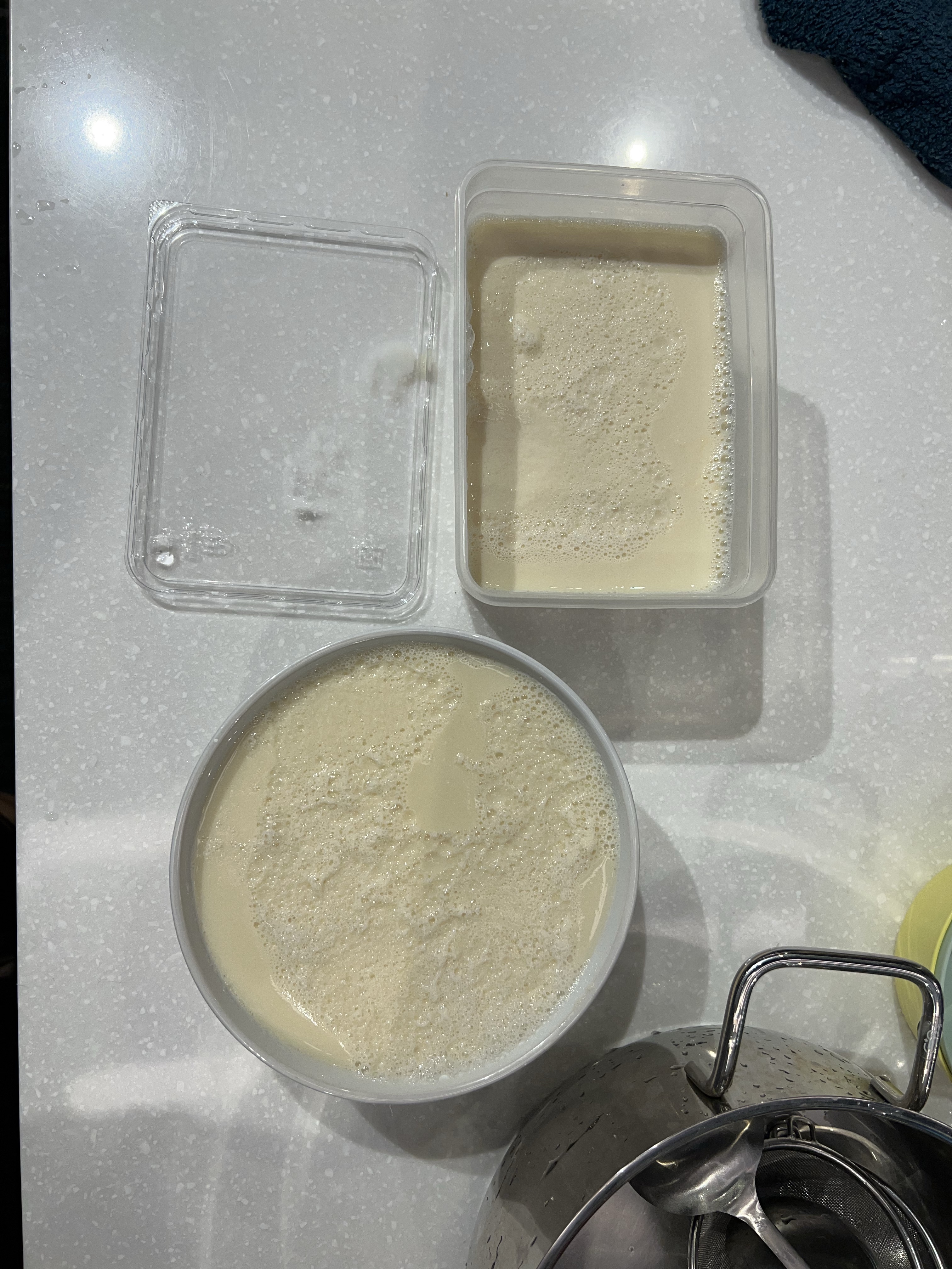接下來換我們才見的變化,就是用醋加入牛奶跟豆漿,加入豆漿就是我們熟知的鹹豆漿,加入牛奶中,就是我們熟悉的起司,只是溫度也是要控制才可以完美凝固。