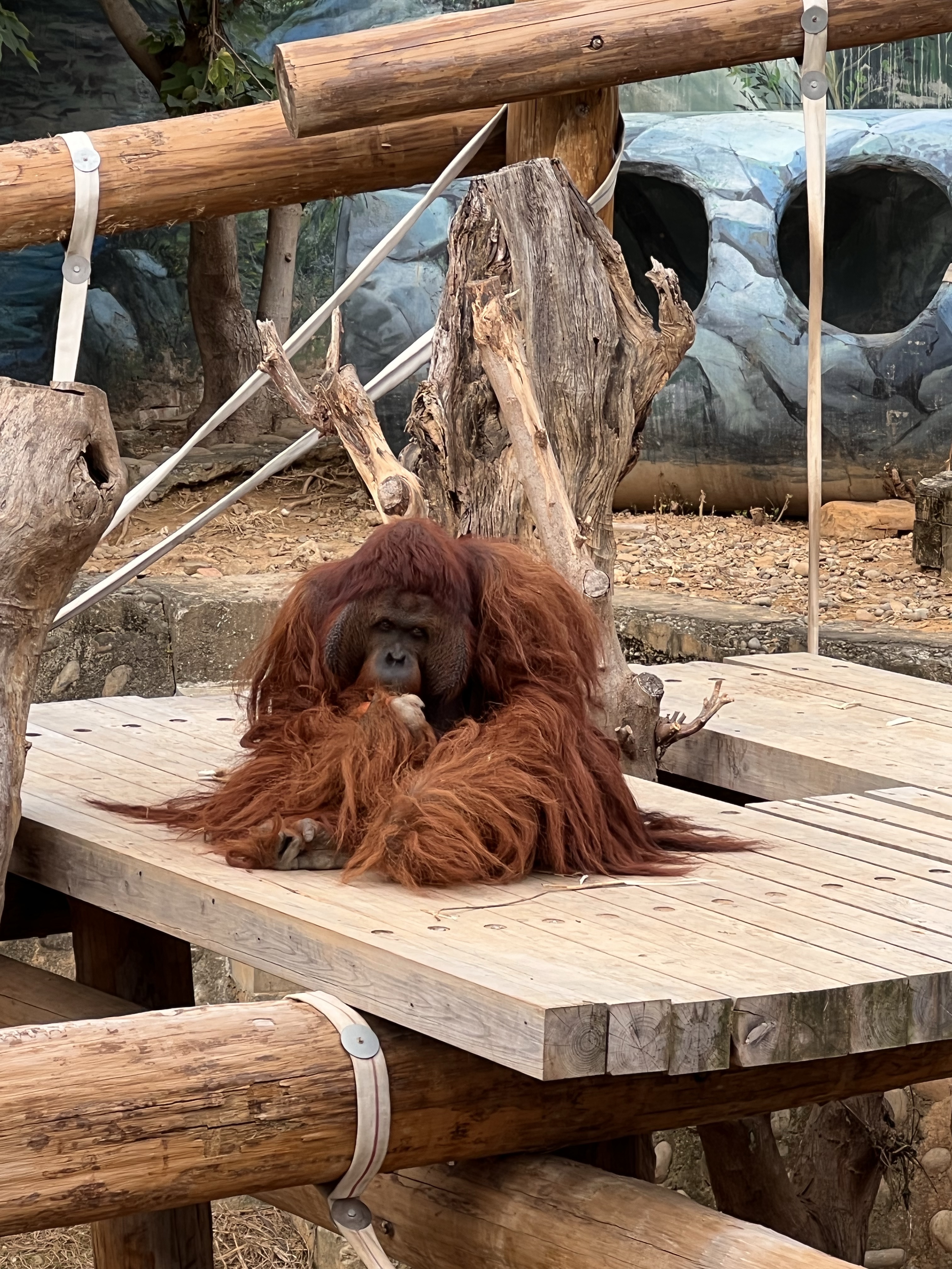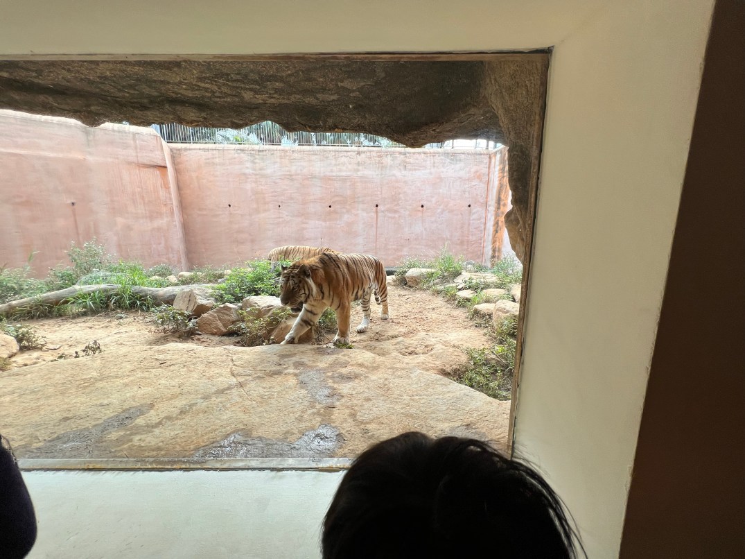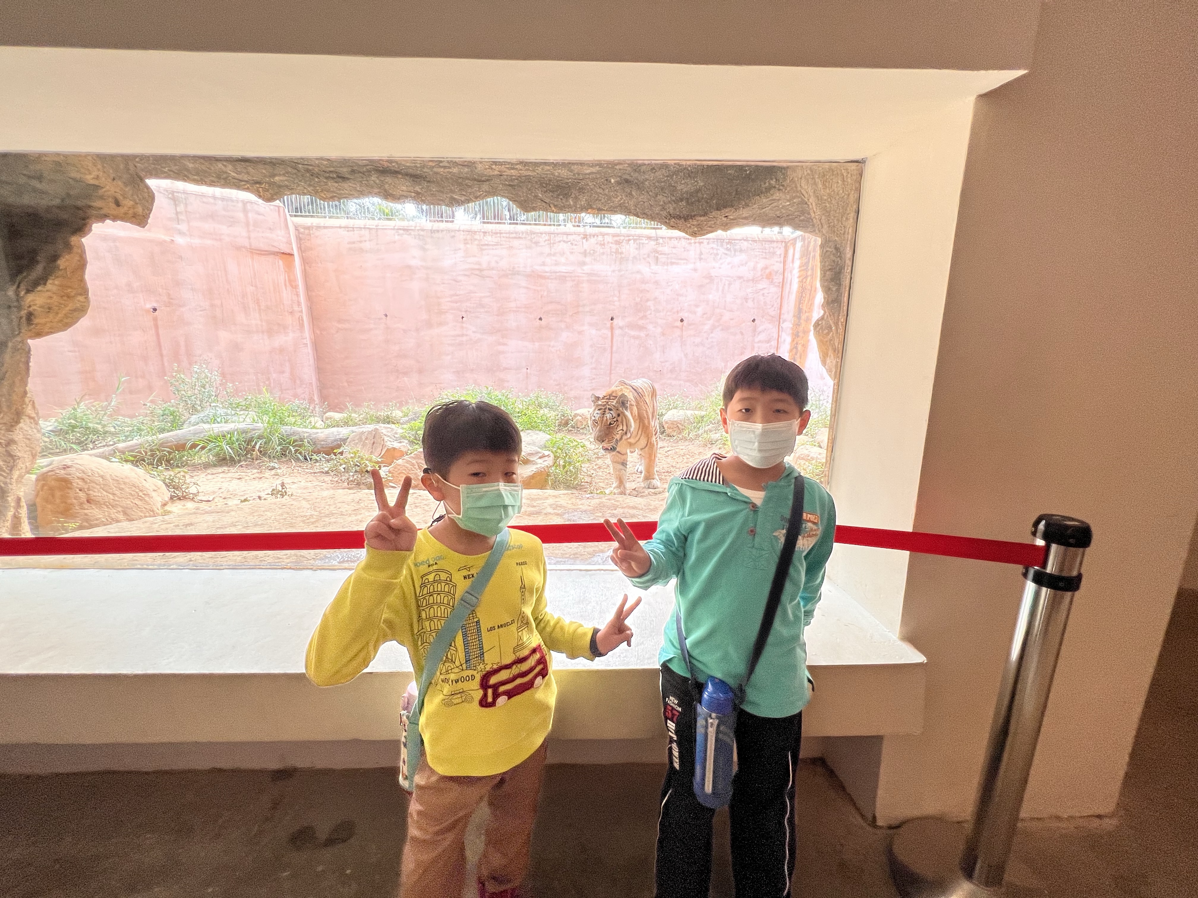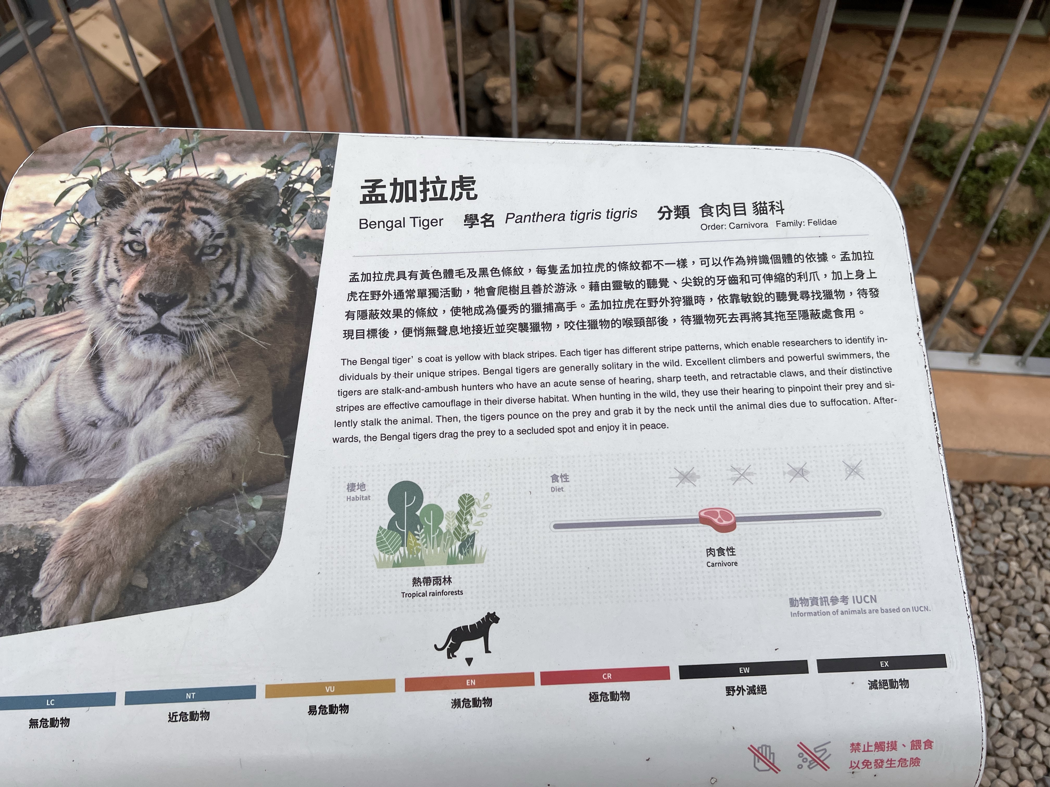 這邊主要的明星是孟加拉虎、馬來熊、紅毛猩猩,這邊的設計,可以近距離看到動物,主要透過透明隔板,讓我們可以清楚的看到動物,因為真的很真實,沐爸剛下去也會有一點被孟加拉虎嚇到,不過要提醒小孩不要拍玻璃。