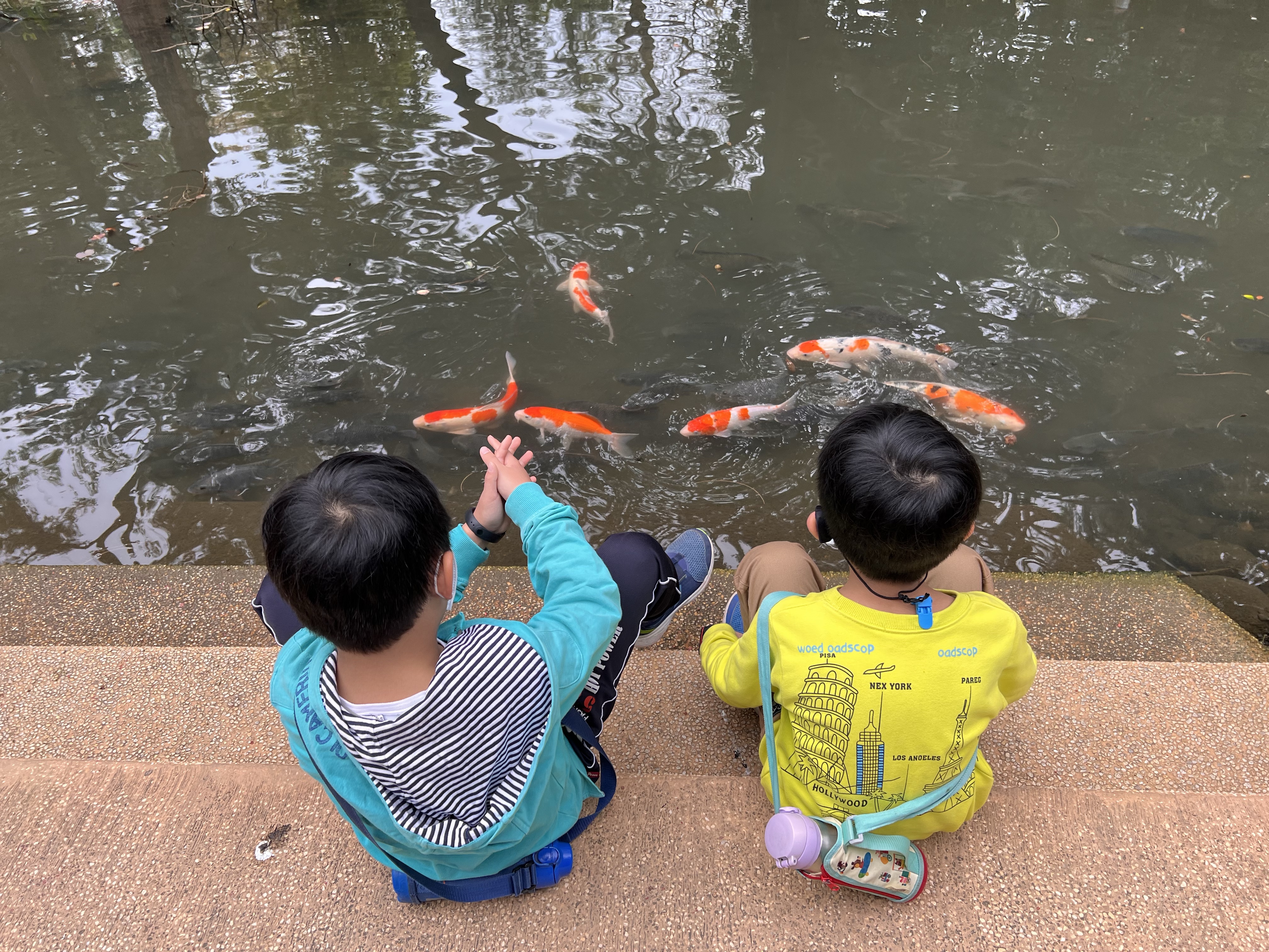 最後,分享大小沐沐在這邊看動物,也坐下來看魚。