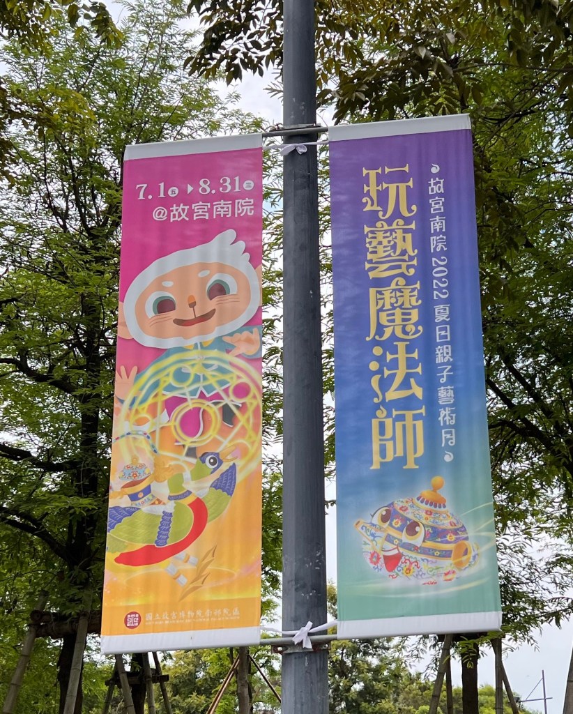第一次來到故宮南院,剛好暑假有" 2022夏日親子藝術月—玩藝魔法師"的活動,裡面有很多活動,我們參加其中的"《魔法師修煉之旅》故宮南院實境解謎",一開始要在二樓拿解謎的題卡,要如何取得題卡,就必須購買門票,因為所有的題目答案都在館內,而題卡是可以自己保留回家的。