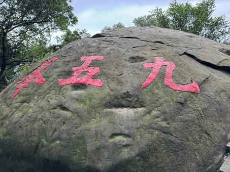 第一座登頂的是九五峰,這裡以那塊巨石上「九五峰」三個紅字而聞名,也是健行者拍照留念的熱門打卡點。這裡的視野遼闊,不少山友專程上來欣賞台北盆地的景色。