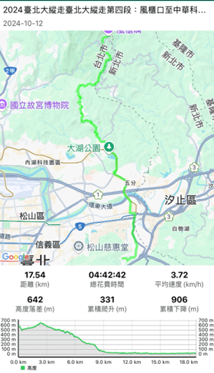 🥾 路線:風櫃口 → 碧山 → 白石湖 → 大溝溪 → 捷運大湖公園站 → 中華科技大學