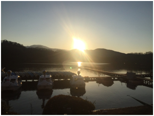 還有一點時間,就去伊豆の瞳 一碧湖(http://itospa.com/nature_park/np_ipekiko/)走一走,由於時間已經是接近傍晚,就只是去看看這一個景點,就大概小走一圈,是相當漂亮的湖,且周邊生態相當豐富,也不會覺得過度開發,因為可以在上面的天鵝船,好像也沒很多艘。