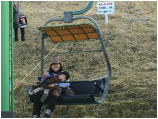 確定好入住宿地點後,第一站去大寶山(http://www.i-younet.ne.jp/~oh-murol/,開了一小段車程,就到了目的地,馬上看到本次要做的纜車,這次覽車的型式比較像去滑雪的纜車,所以要小心不要把東西掉下去了。所以跟小人坐,還是要非常要稍微抓一下小孩。