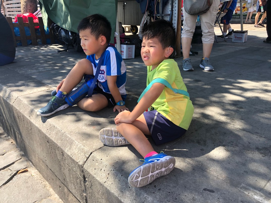 在回程時候,因為太熱,就買飲料來喝,沐沐一家就在路邊坐下喝了起來!