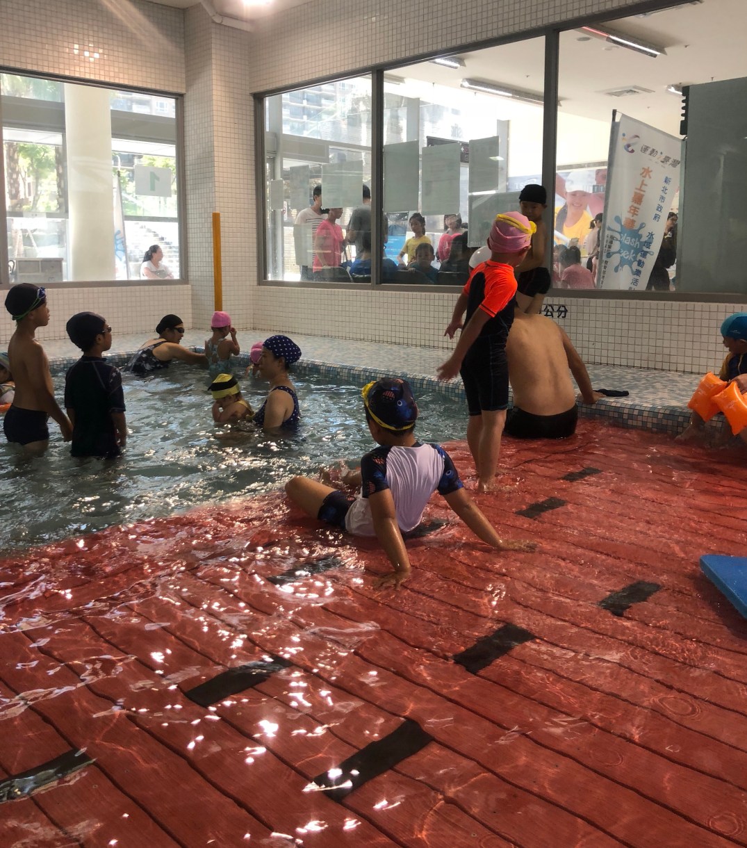 這是淡水國民運動中心的兒童泳池區,就是一個大家在泡澡的狀況。