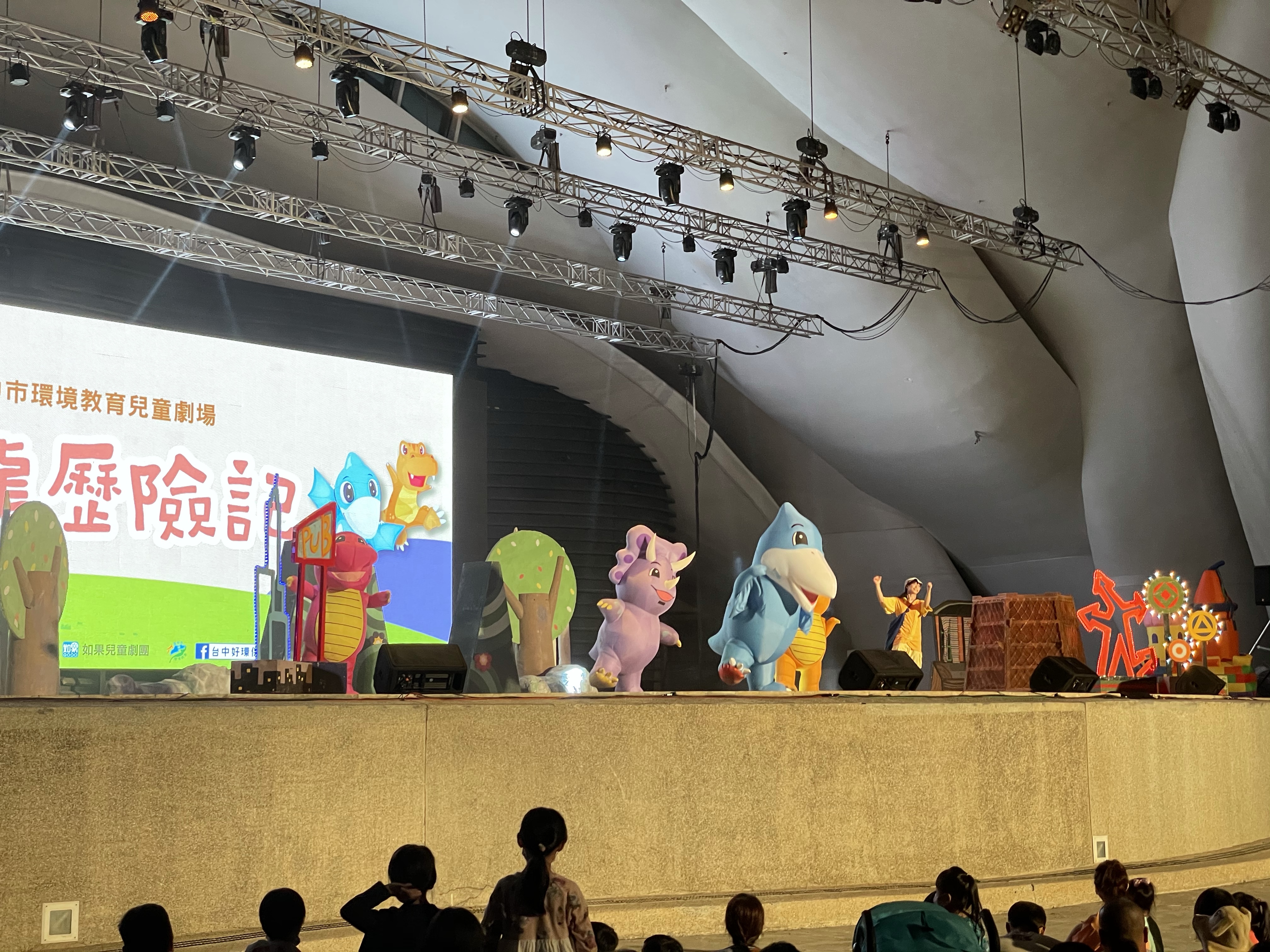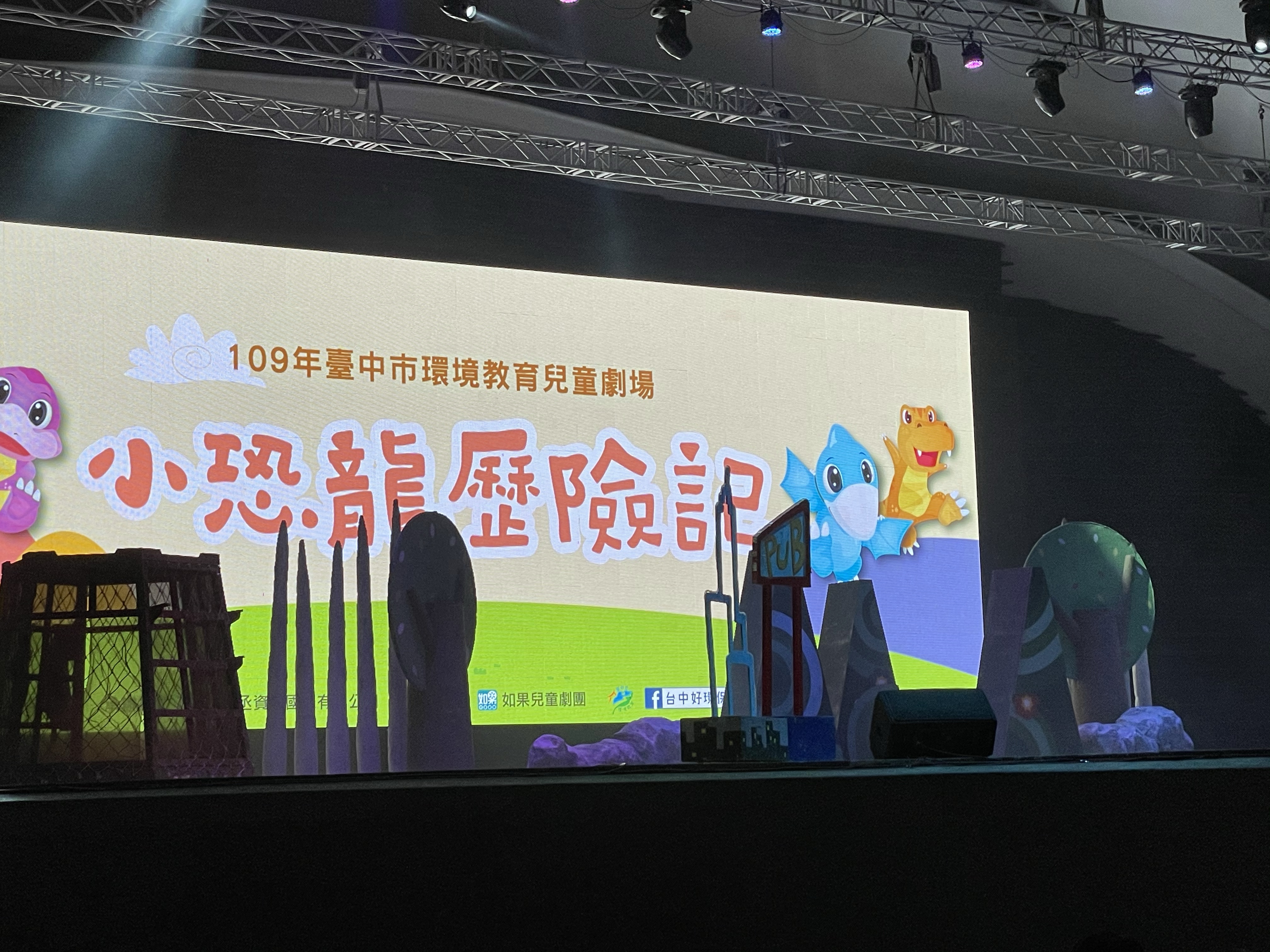 回台中晚上,打算去看如果兒童劇團舞台劇「小恐龍歷險記」,天候不佳,本打算放棄了,但還是去了,大小沐沐很開心看了這場舞台劇。舞台劇主要跟環境保護有關,大人小都可以增加很多知識。