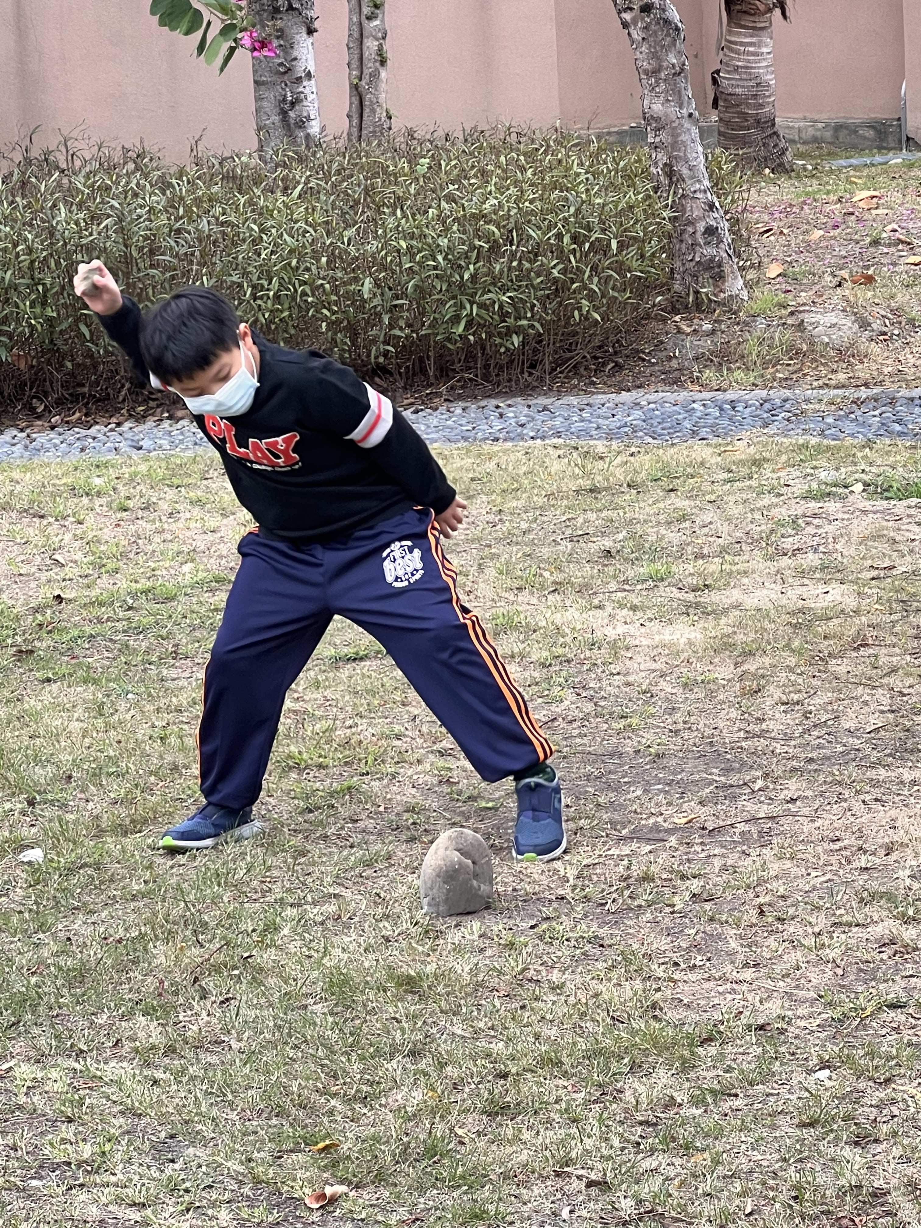沐爸沐媽說要出去走一走運動一下,走一會兒,小沐沐說要去19甲健康公園,我們一家人就慢慢走,走20分鐘抵達目的地,在那邊玩了一下下,大沐沐一直在那邊玩石頭打石頭,小沐沐玩滑步機、盪鞦韆與打石頭,然後一家人在走20分鐘回去。