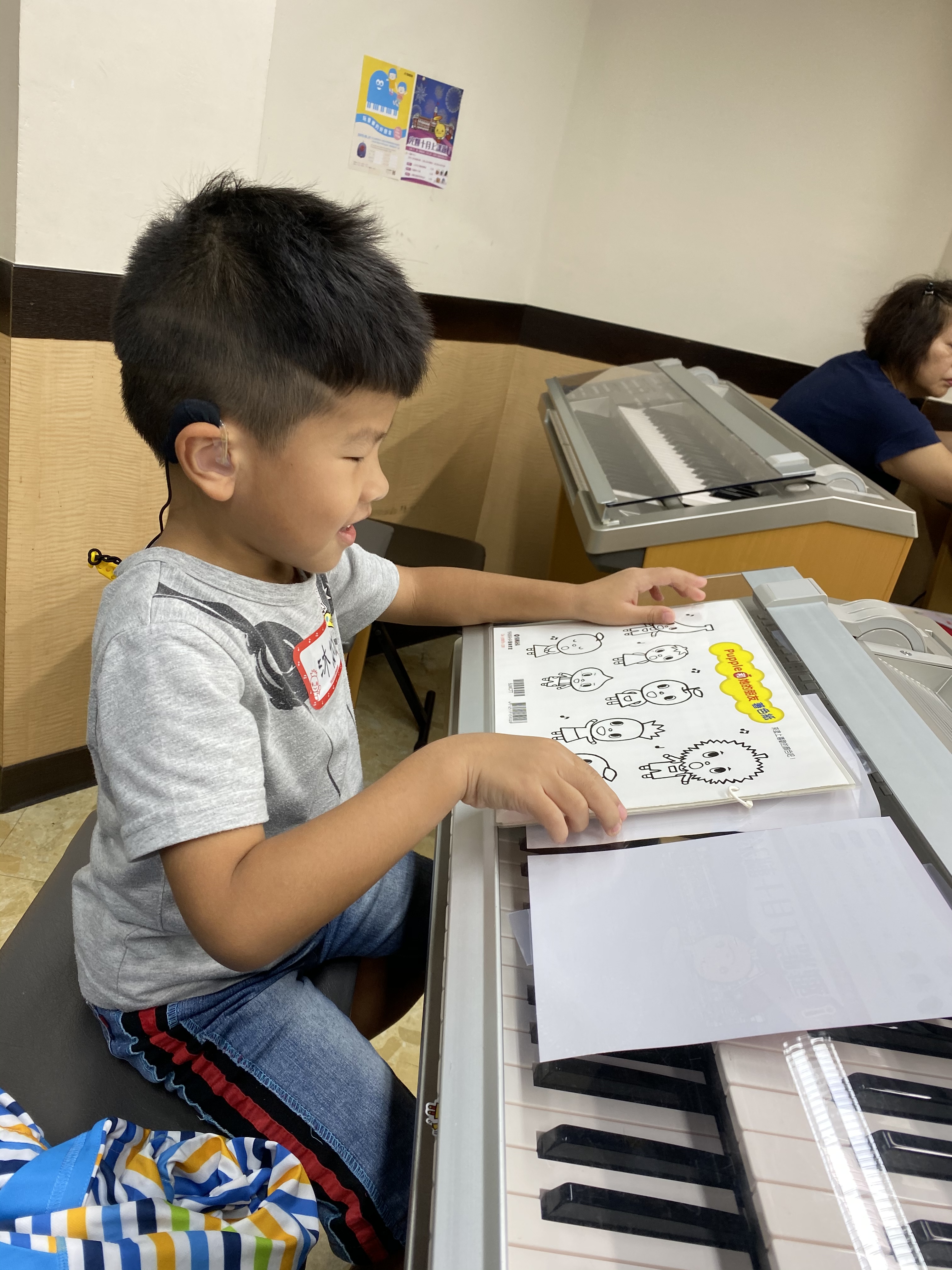小沐沐今天再次來體驗音樂課,為什麼高達三次呢?第一次是跟哥哥一起去體驗一日店長後,我們安排第一次體驗,當時還在中班,上課相當的不專心,而且想要又不想要的,沐爸沐媽就決定以後再看看。