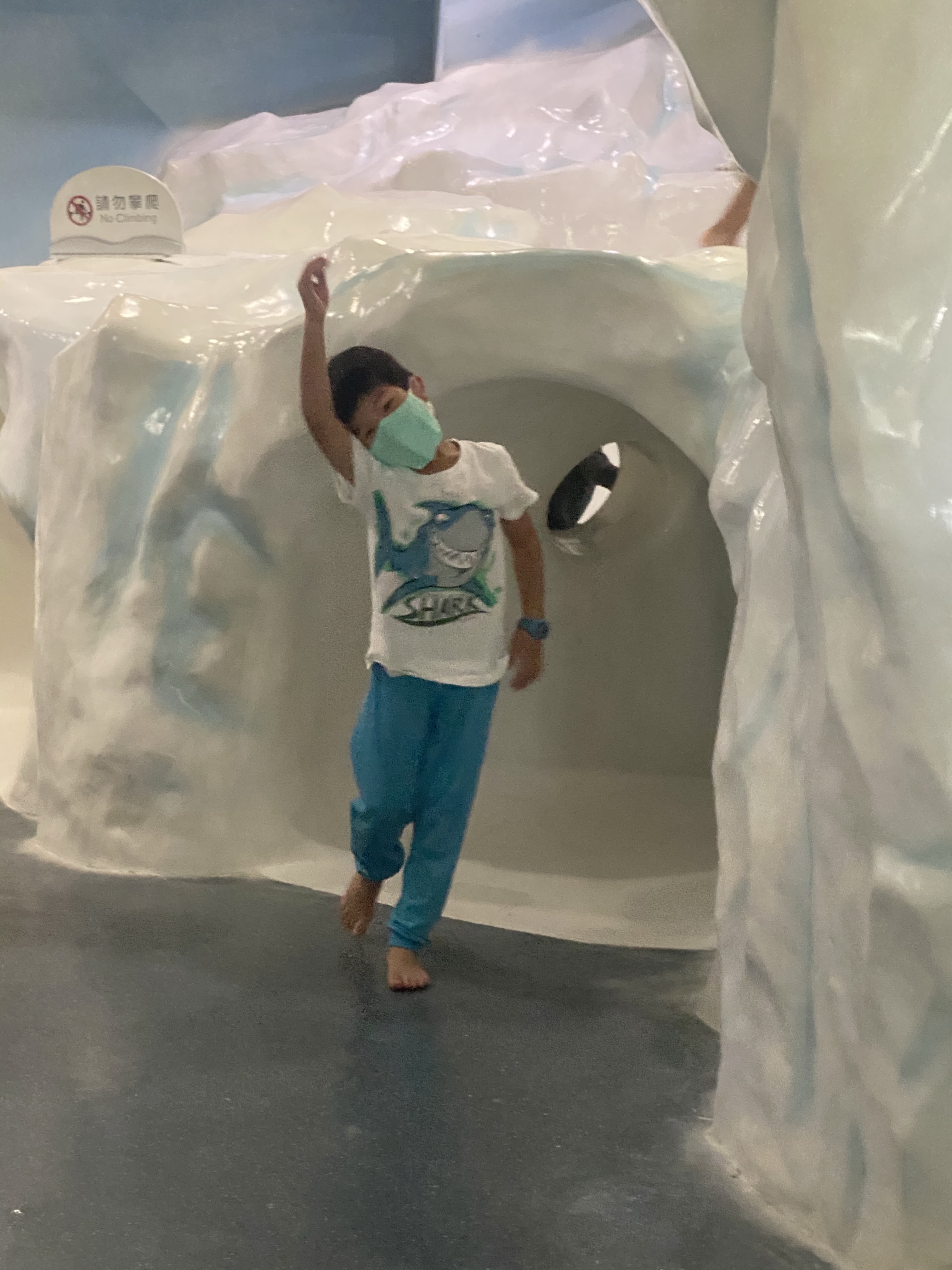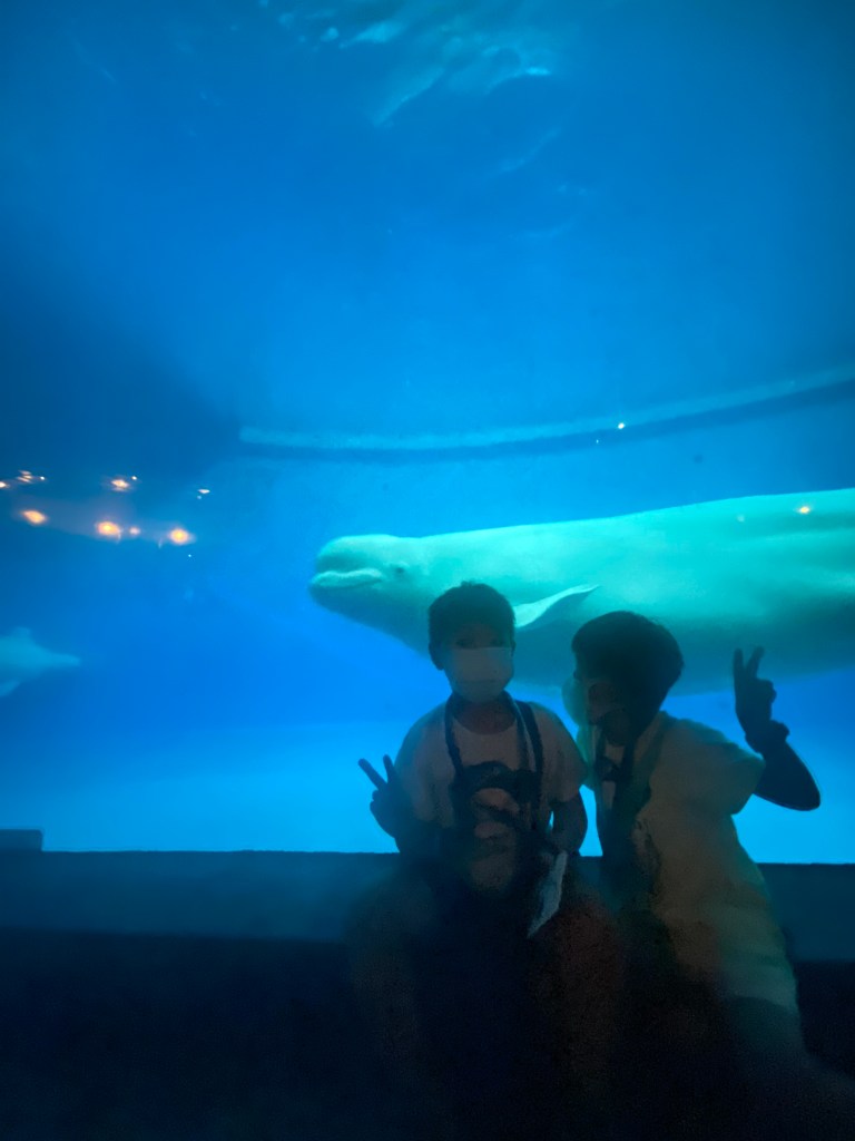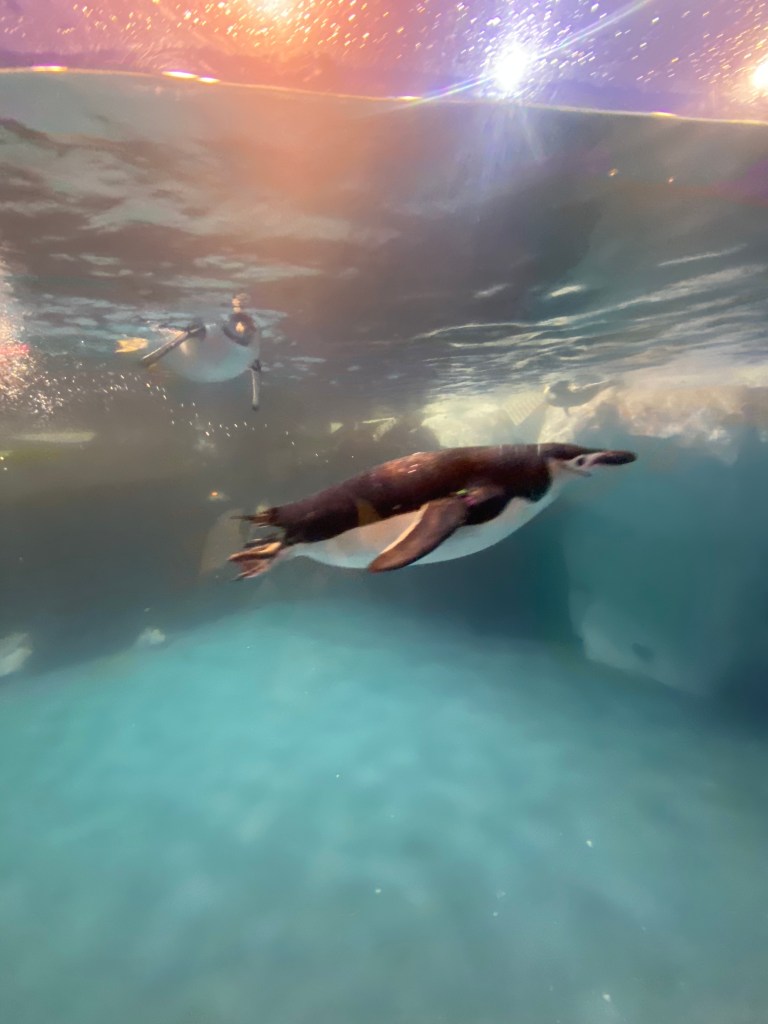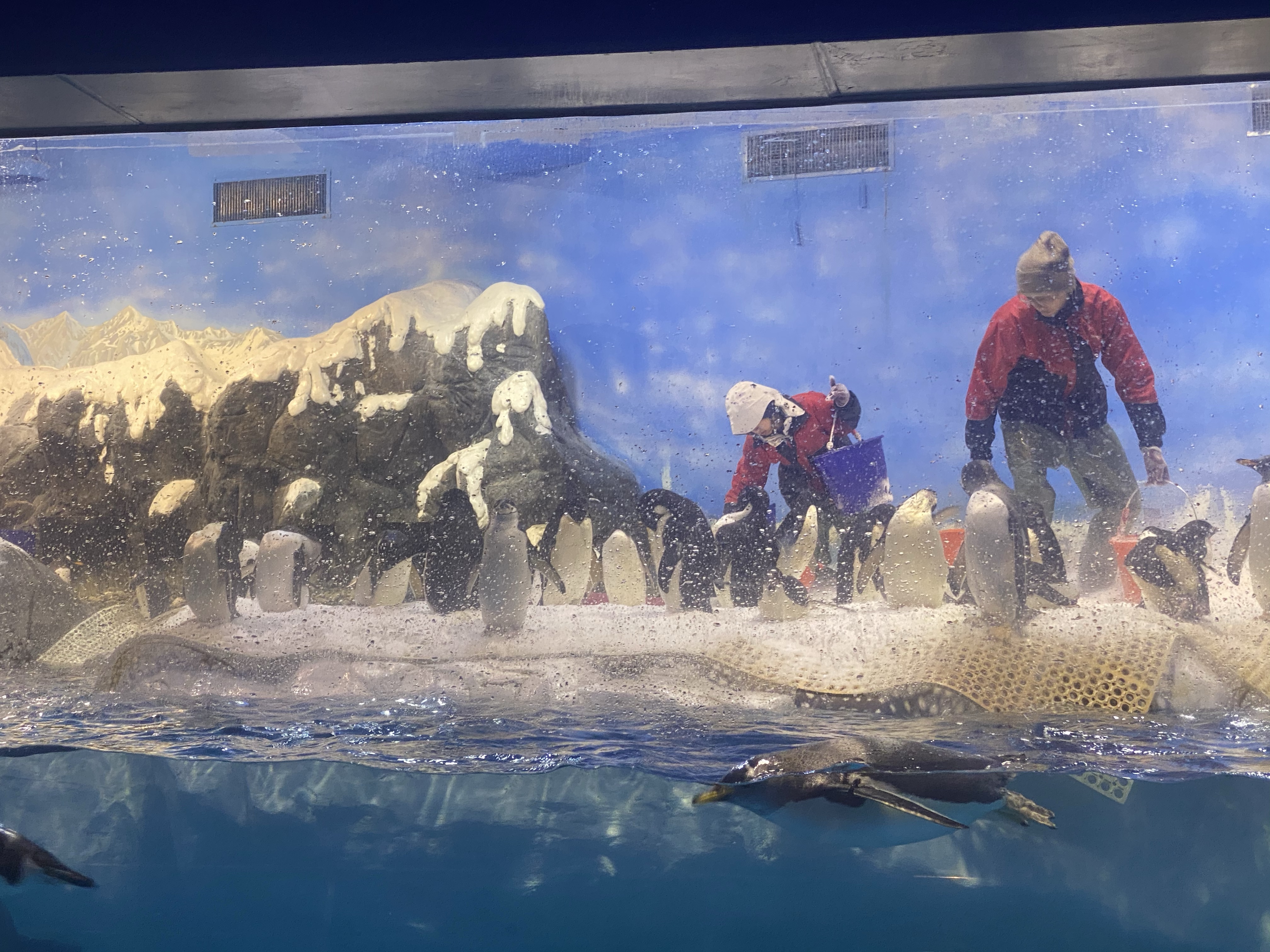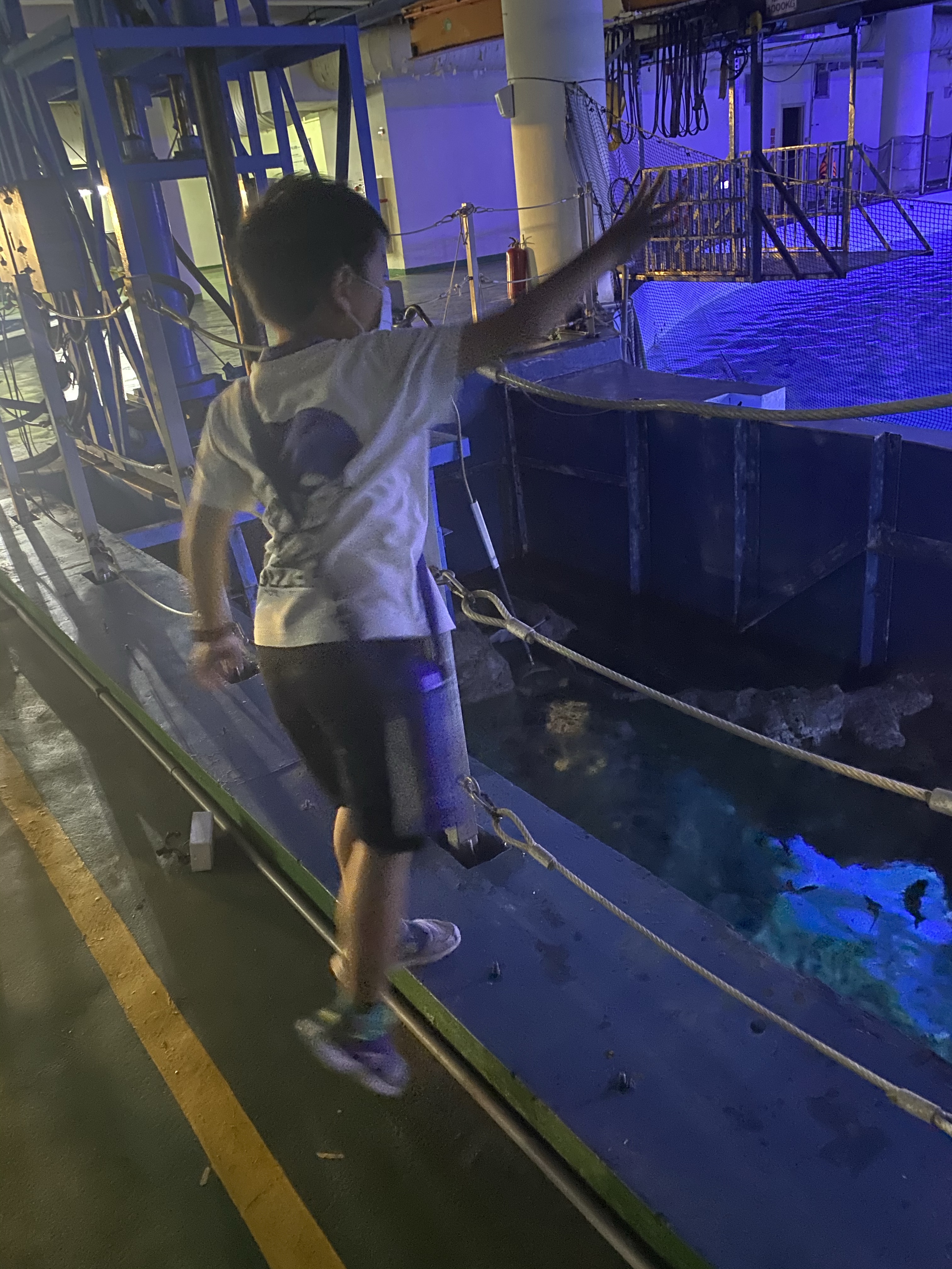 時間差不多,我們就去集合了,然後跟往常一樣,開始分區,然後帶到住宿附近可以寄放行李的櫃子,放置行李,然後進行導覽分組,由於太熟悉,所以大多都是等待.分組完成,我們就在世界水域館參觀,原則上差異不多,大家還是最喜歡看企鵝,大小沐沐也不例外,在所有展館逛至一圈後,就去參觀後場.