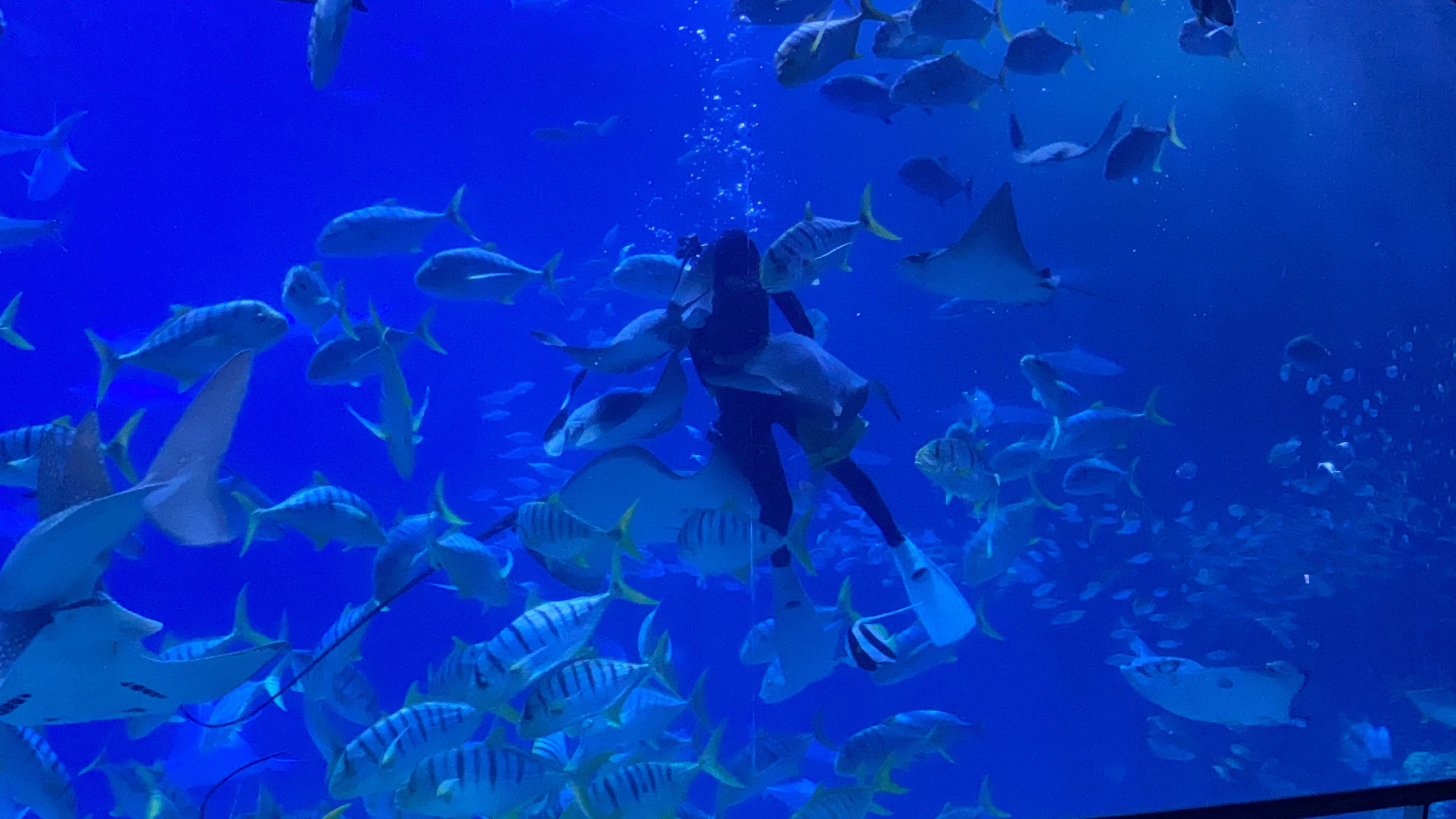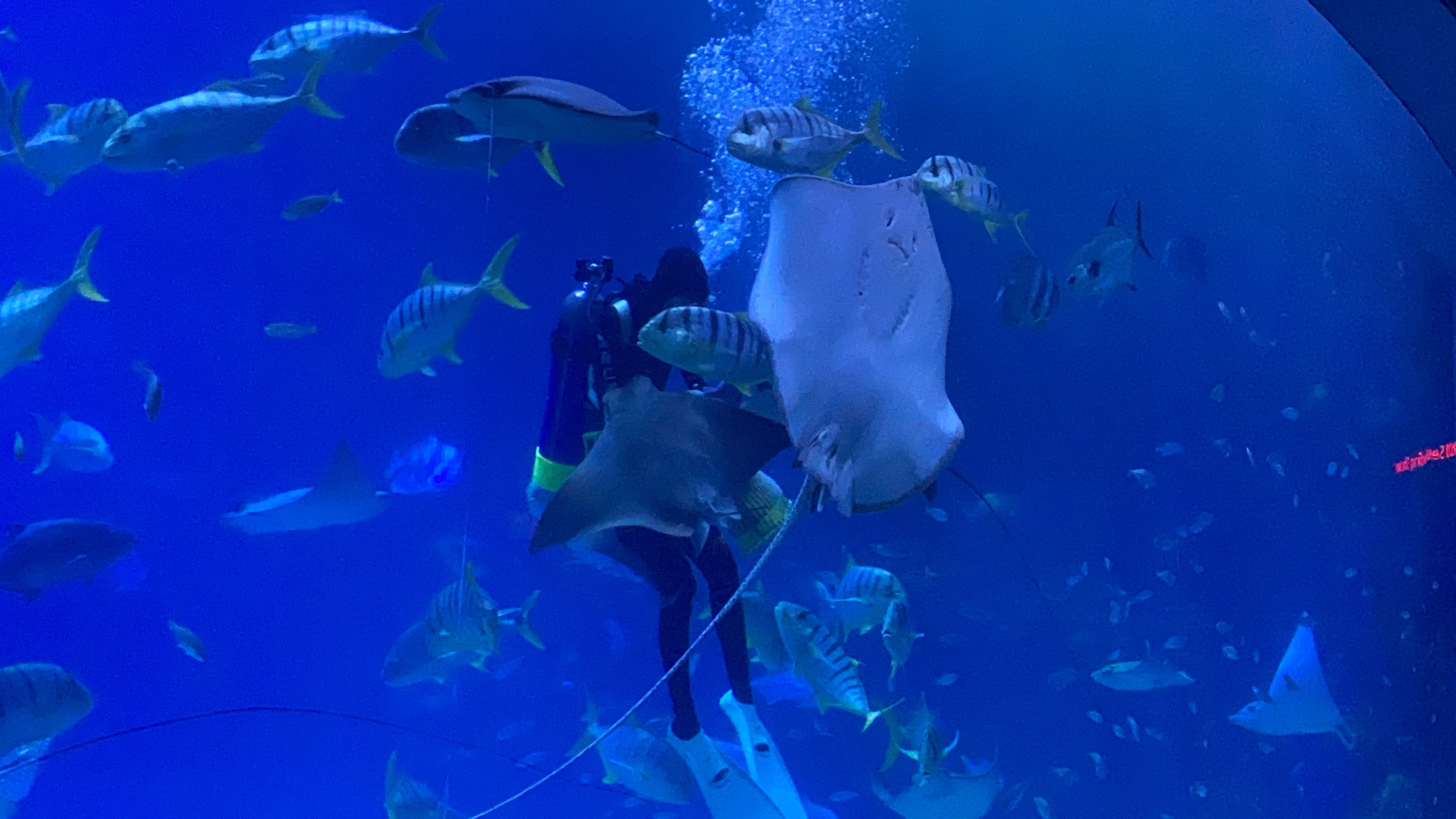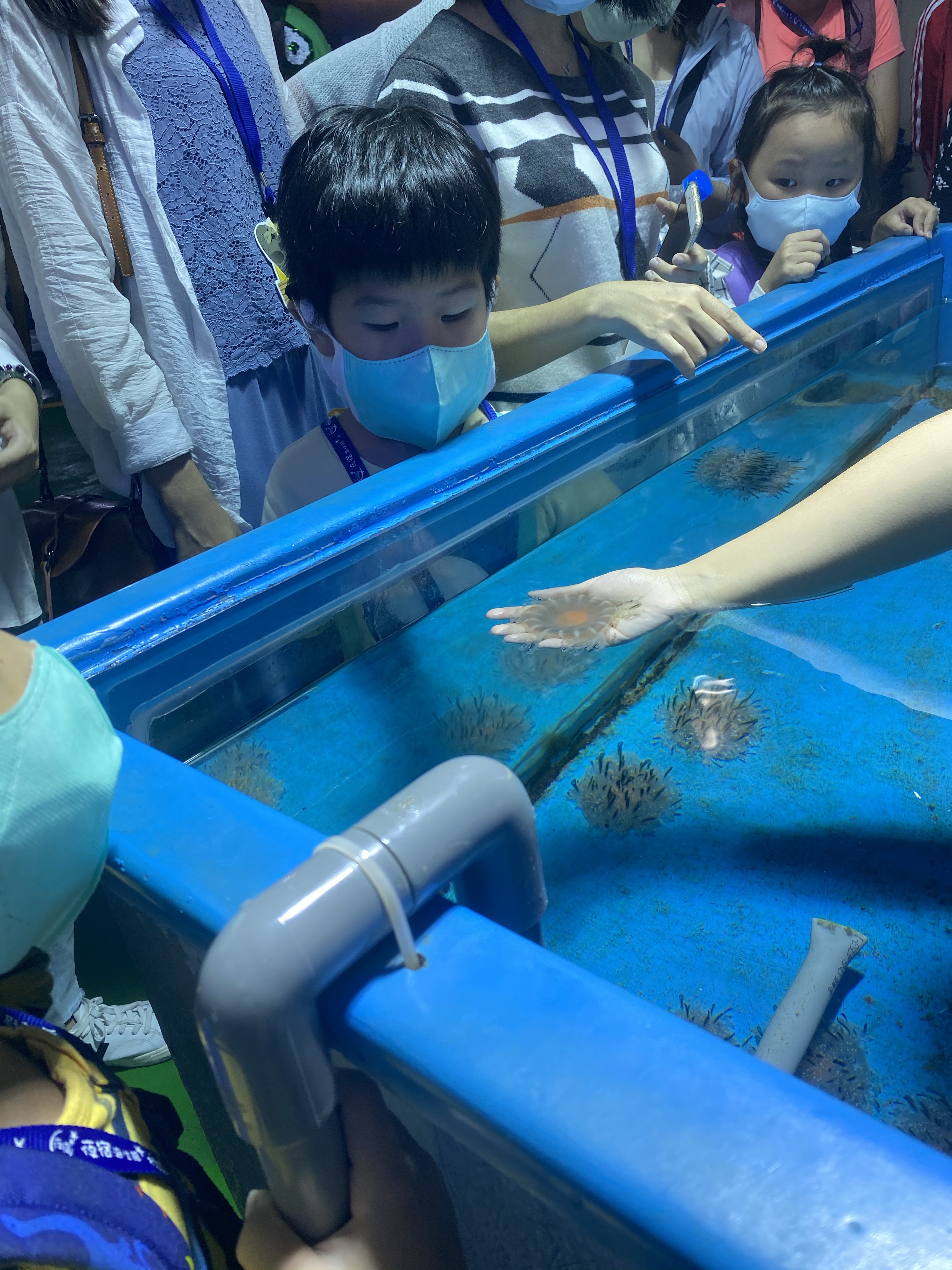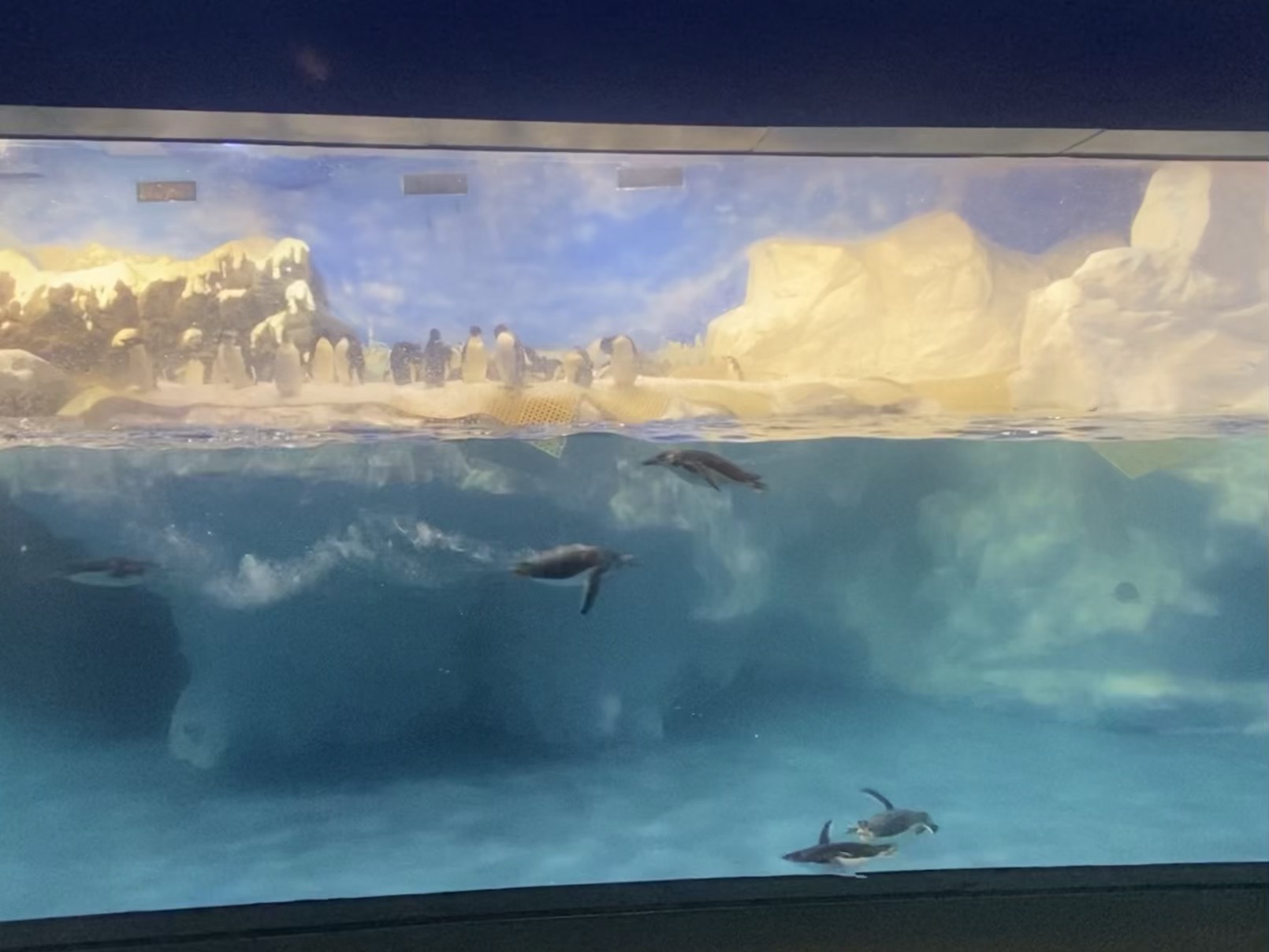 時間差不多,我們就去集合了,然後跟往常一樣,開始分區,然後帶到住宿附近可以寄放行李的櫃子,放置行李,然後進行導覽分組,由於太熟悉,所以大多都是等待.分組完成,我們就在世界水域館參觀,原則上差異不多,大家還是最喜歡看企鵝,大小沐沐也不例外,在所有展館逛至一圈後,就去參觀後場.