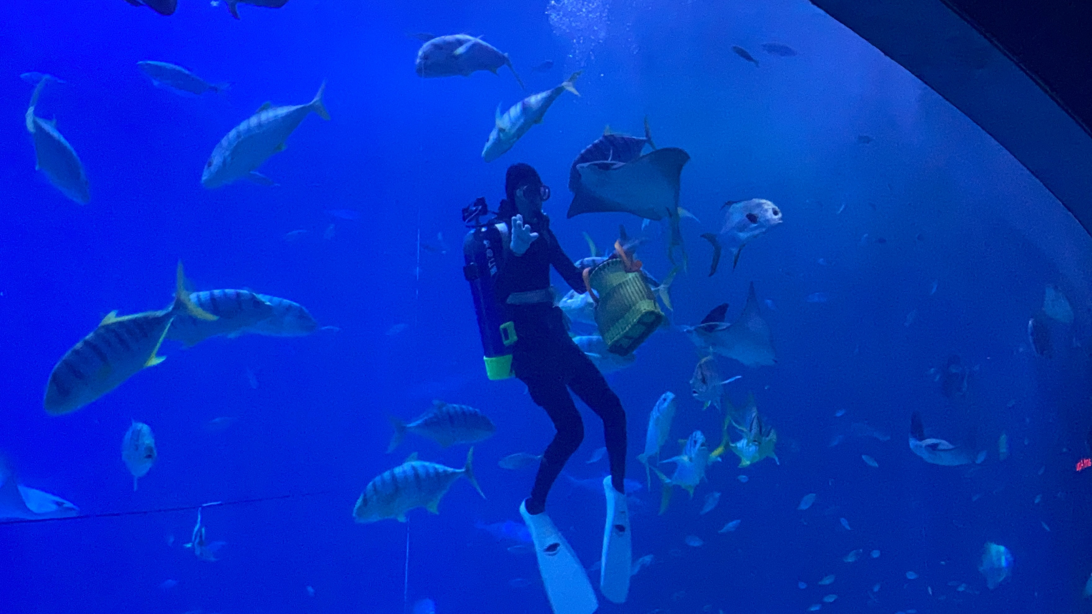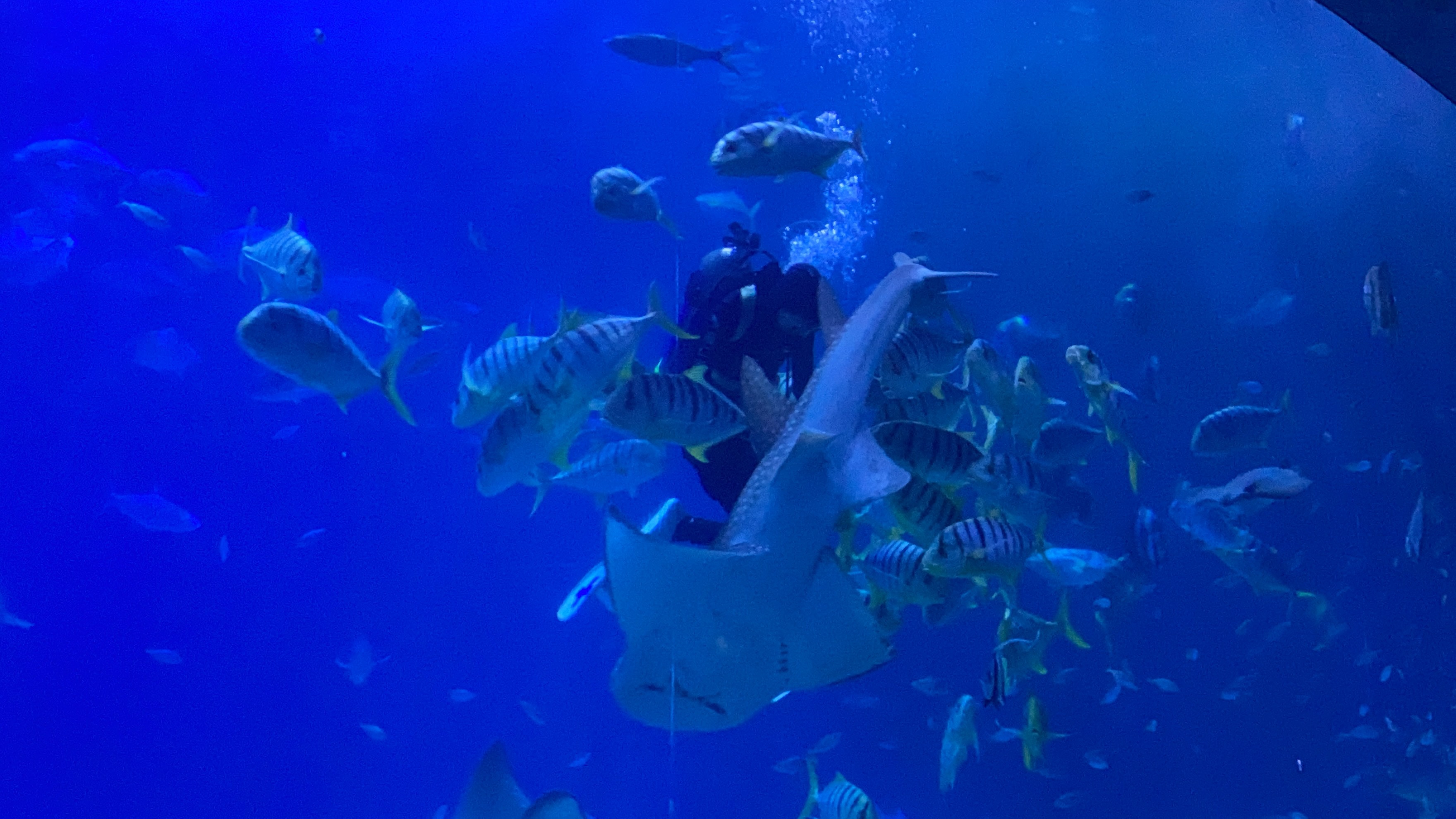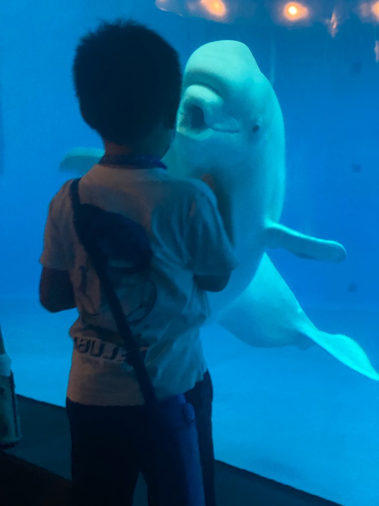 行程大致上沒有太多問題,我們第一天來的有一點早,所以就去寄放行李,然後開始逛珊瑚館跟台灣水域館,在快打烊的時間上,人潮相對性的比較少,所以逛起來也很舒服。這次在白鯨區看到可愛的表情,還是生氣表情呢?真的不是很清楚,只能說白鯨隔著玻璃窗,感覺相當清楚。