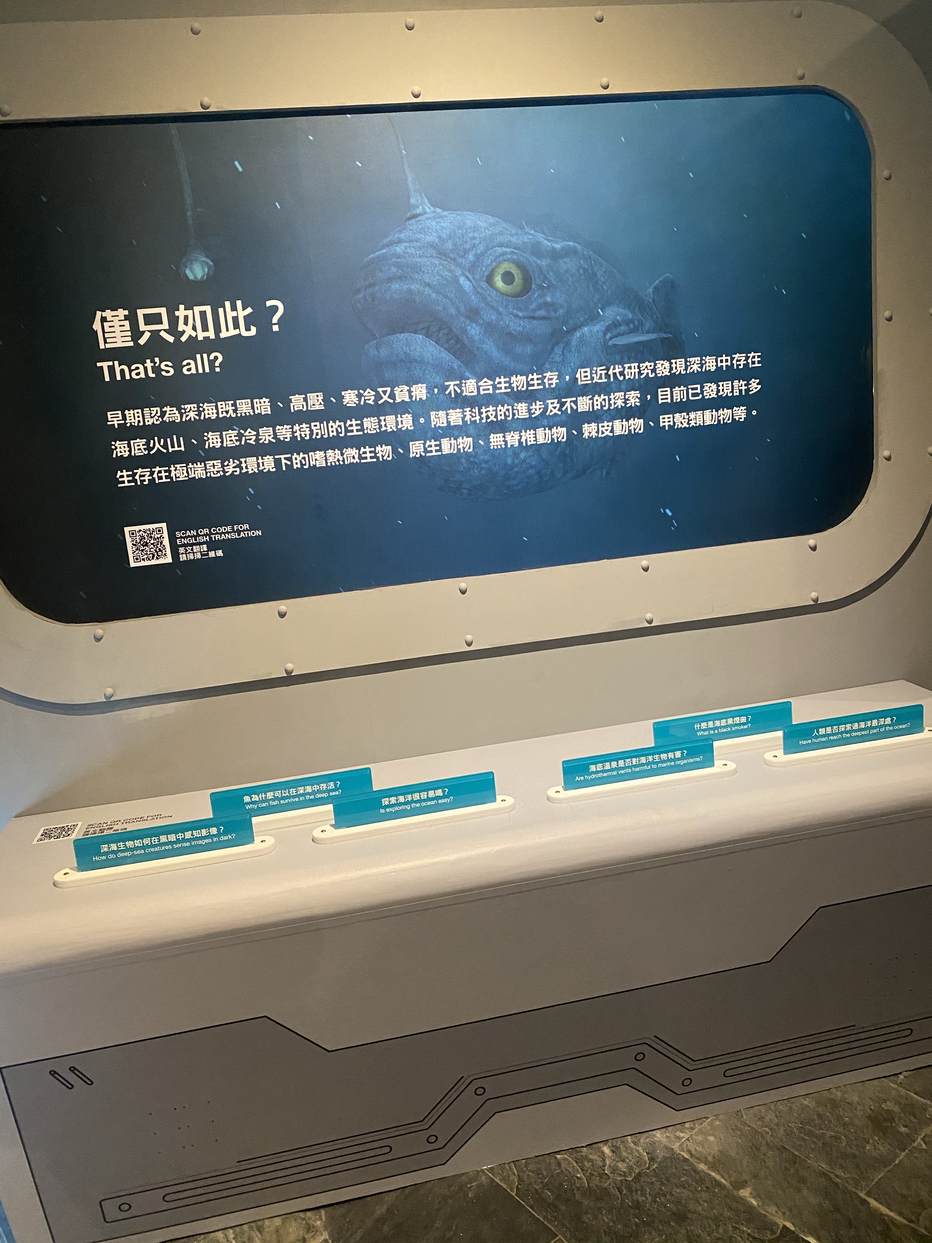 特展部分,主要介紹深海魚類,還有人類如何去調查深海魚類,還蠻有意思的,還有一個是養殖魚類的介紹,也還不錯,透過自己設計養殖場,知道如何養殖.