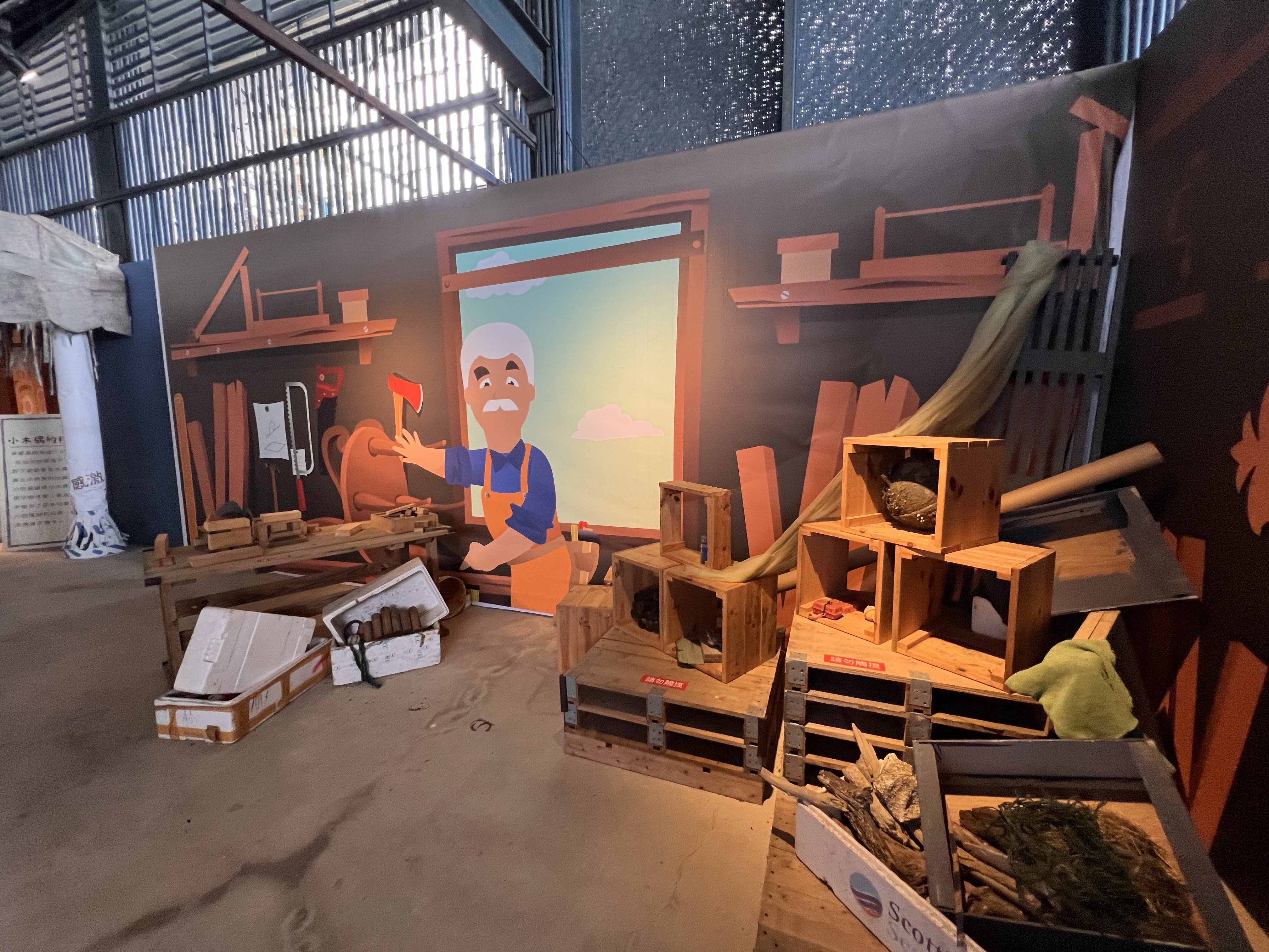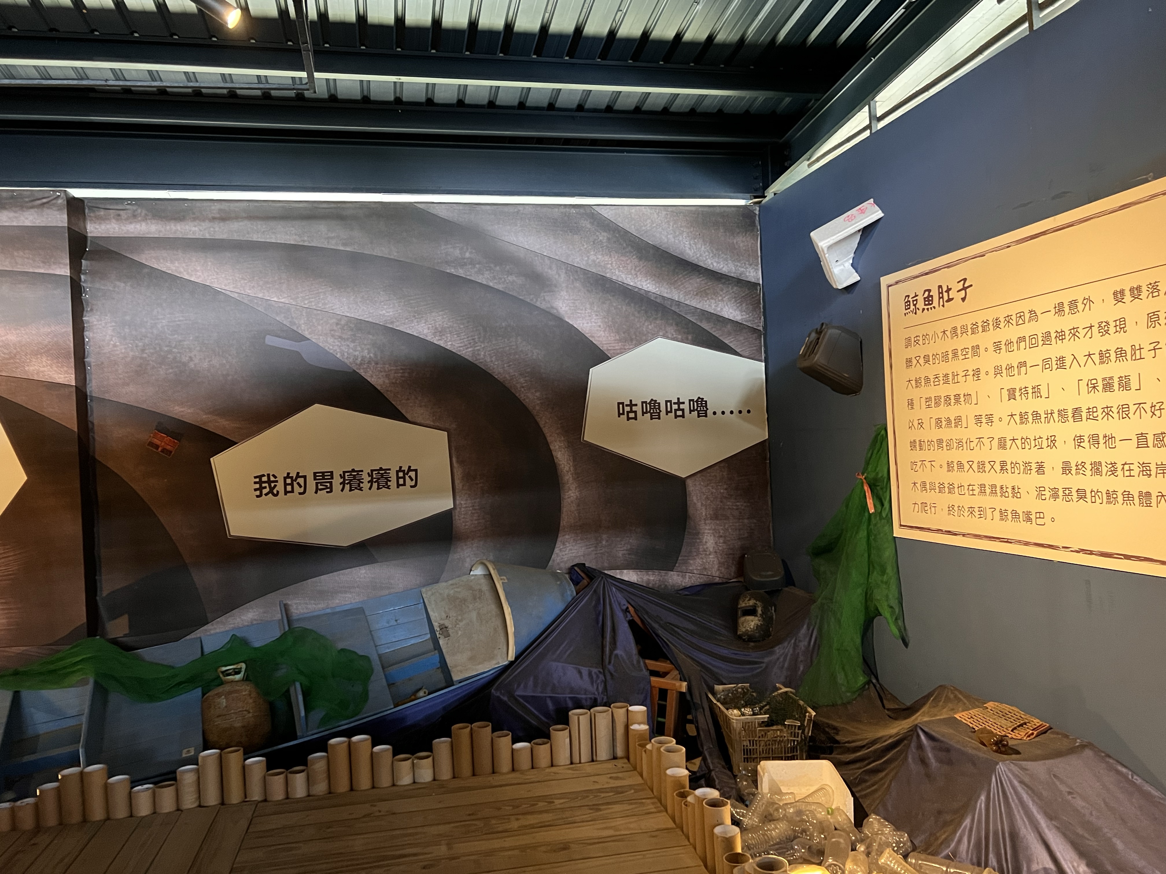 先到一個最近的房子逛逛,發現這一個館是在講海洋生態保育,不過是用木偶奇遇記做串連,還蠻有趣的,木匠就是廢物利用的工匠,鯨就是吃了很多垃圾的鯨,呈現的很有特色。