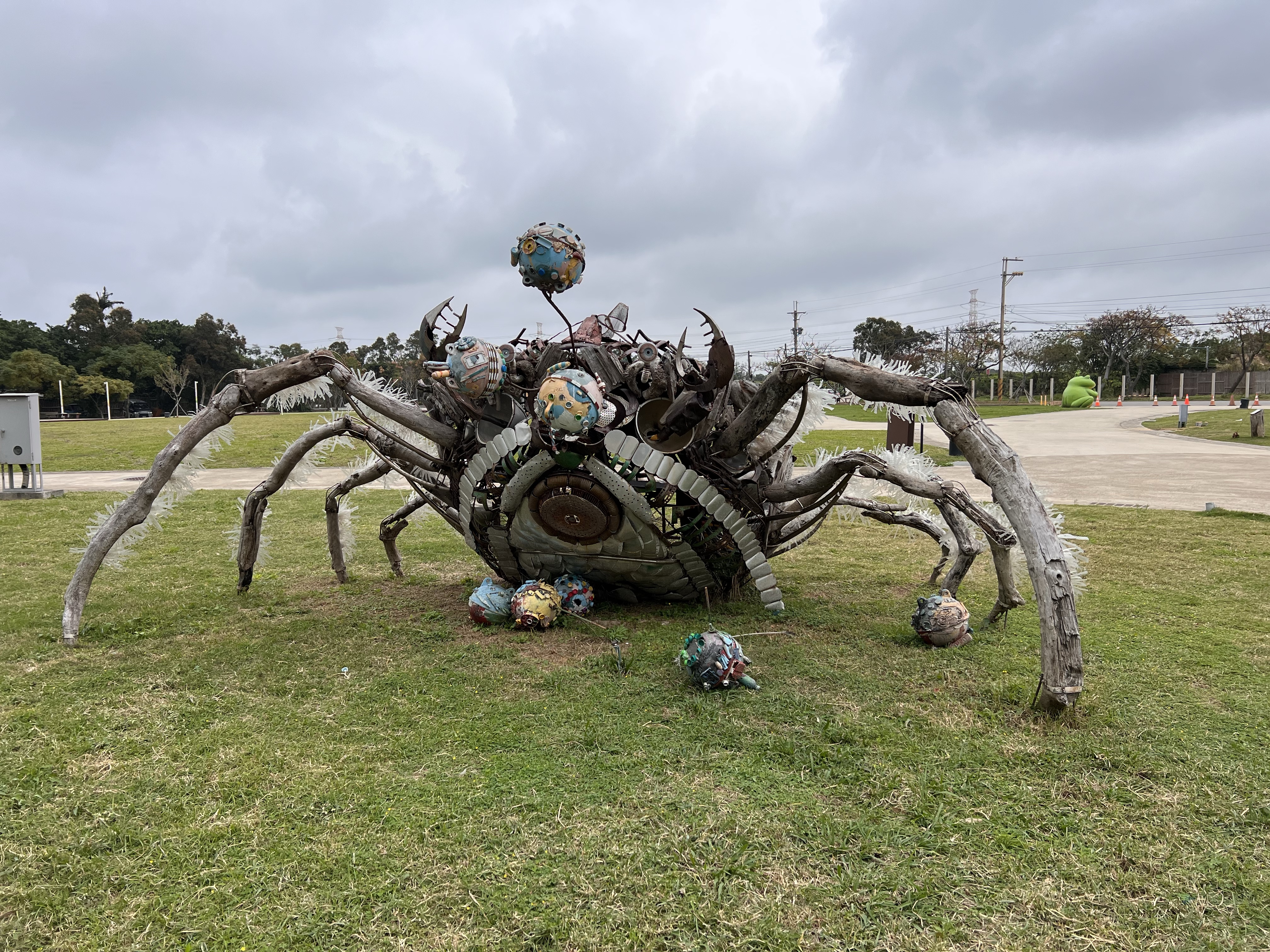 早上來新屋騎腳踏車,下午在這邊找看有什麼好玩的地方,就找了這一個地方來看看,這邊有好多用廢棄的物品製作的造景,造景有製作成經、螃蟹等水中動物,還有稻草假人等。所以在這邊走走應該蠻舒服的,只是今天太冷了,夏天可能也會太熱吧,看來是春秋來這邊比較舒服,我們有看到在導覽的人員,也有製作DIY的部分,有需要的就自己上網查查看了!