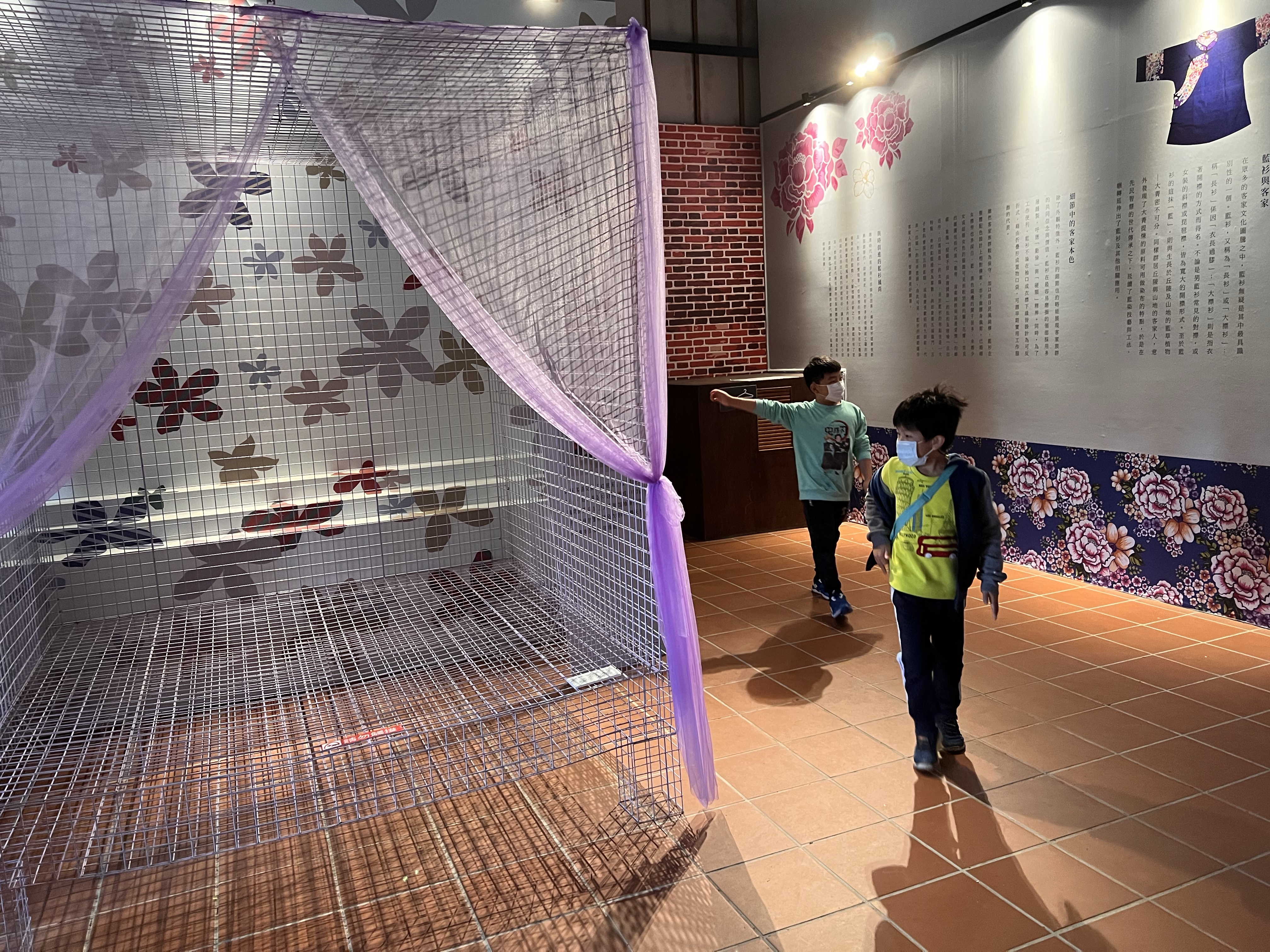 後來我們有走到一個三合院,不過展場好像還沒有完全弄好,我們就參觀某一邊,這邊是透過鐵製品展出類似以往家具的模樣。
