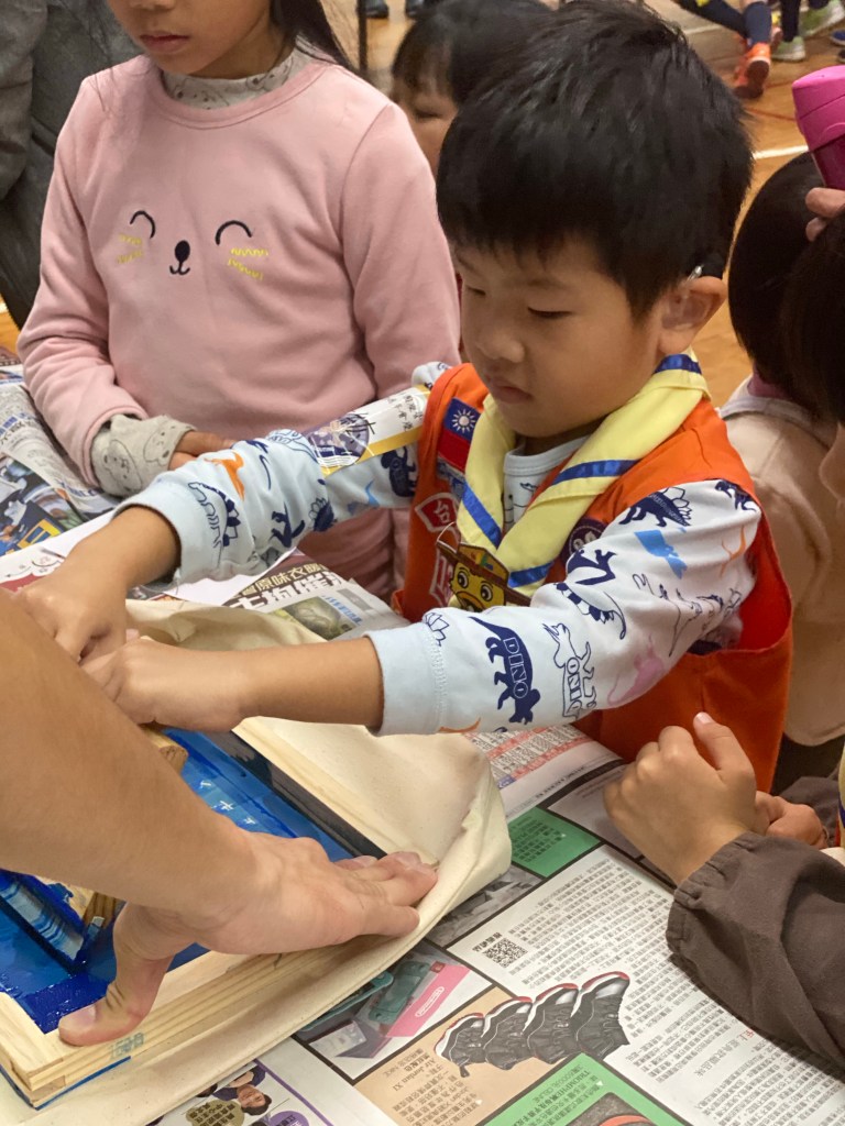 今天是淡江大學童軍團45周年團慶,本年度的活動主要是安排絹印活動,小朋友跟大人都玩得很開心。