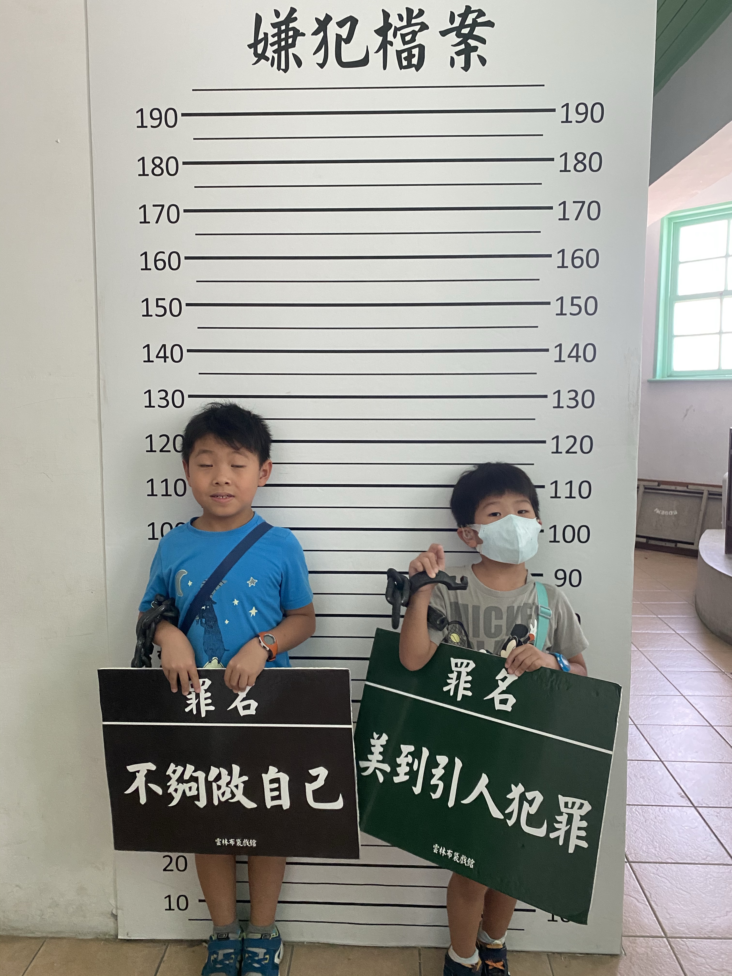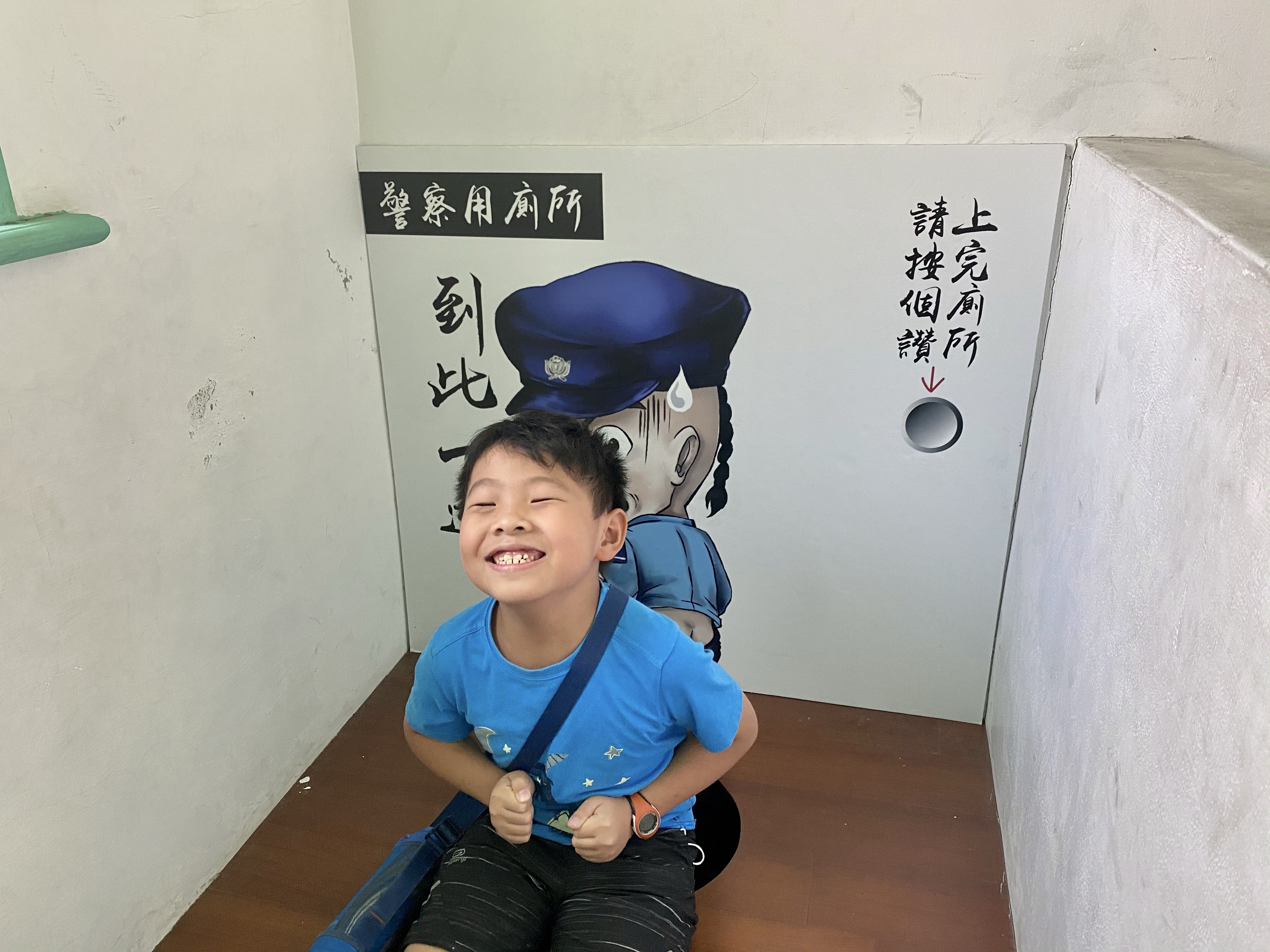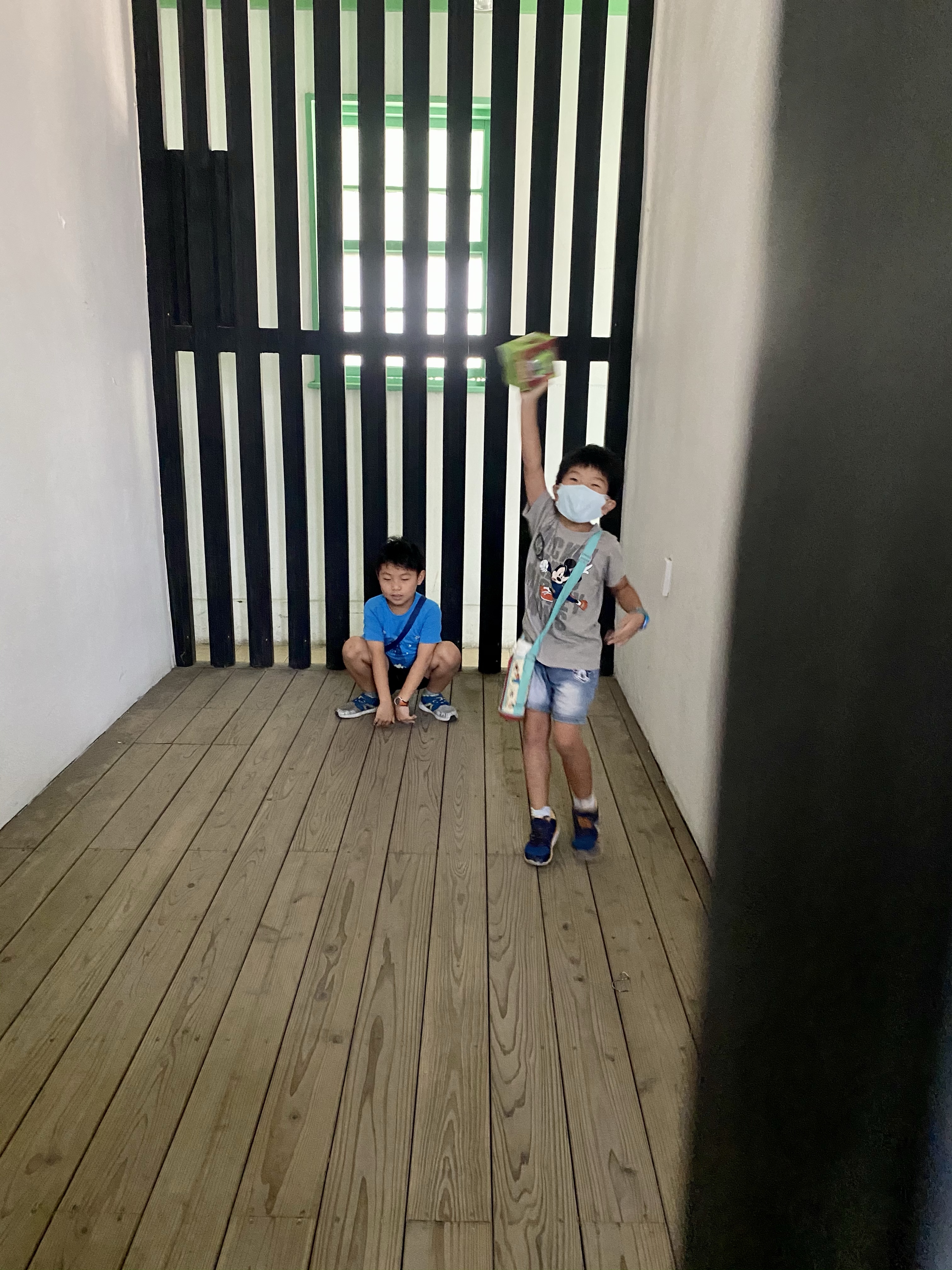 一樓除了介紹之外,中間是一個喝飲料的地方,周邊還有幾個房間可以參觀,一個是購買禮品跟DIY的地方,還有一個是介紹牢房的地方,牢房的地方,一家人玩的很開心。