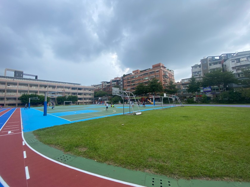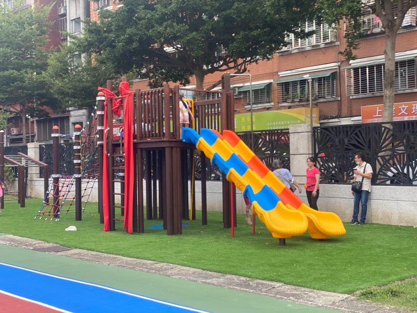 今天是學校日,但是大小沐沐還是先去上完游泳課,而先派沐媽先來學校看看,而沐爸等大小沐沐上完課之後,再去學校跟媽媽會合。今年學校比較不一樣是操場進行了整修,所以非常的漂亮,另一個是兒童的溜滑梯也改成建構式的遊樂區,這是最大的不同。