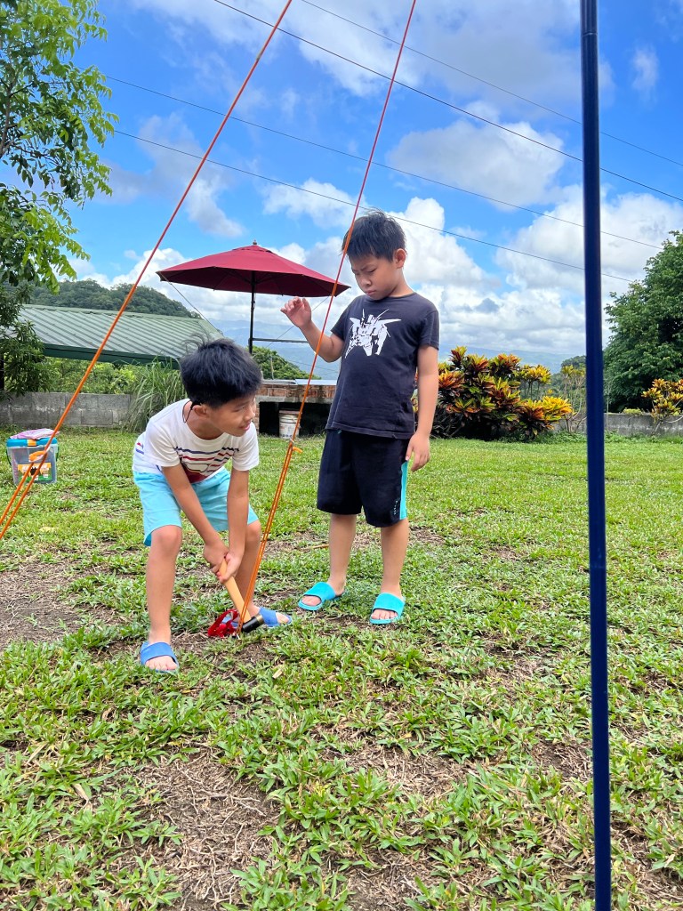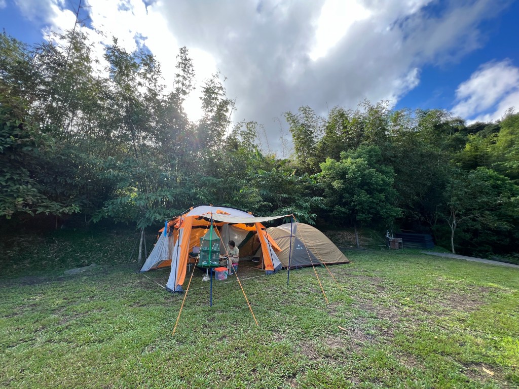 本次露營,因為隔天下雨機率高,所以就很關心下雨狀況,結果半夜3-4點時候下了一陣雨,早上是乾爽的天氣,但帳篷都雨水了,感覺天氣可以好到中午,但是天有不之風雲,大概8點開始有飄雨,但是是一陣一陣,有時又出太陽,沐爸沐媽當機立斷立刻收拾物品(昨晚已經收一些第二天用不到的物品),移動帳篷到可以曬到太陽的地方,並抖動帳篷加速曬乾帳篷,在還沒有下大雨前完成收帳,後續就聽到營主跟我們說下大雨了,還好是收乾帳,回家再用除濕機加強一下,應該就還好。